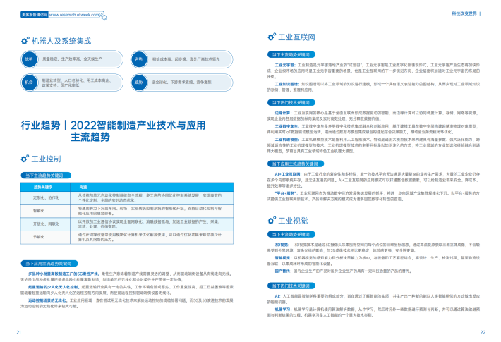 智能制造目前的主要的趋势包括智能制造核心设备的国产替代趋势、应用范围扩大化及应用场景深度化趋势等。
