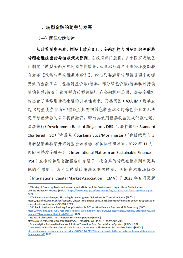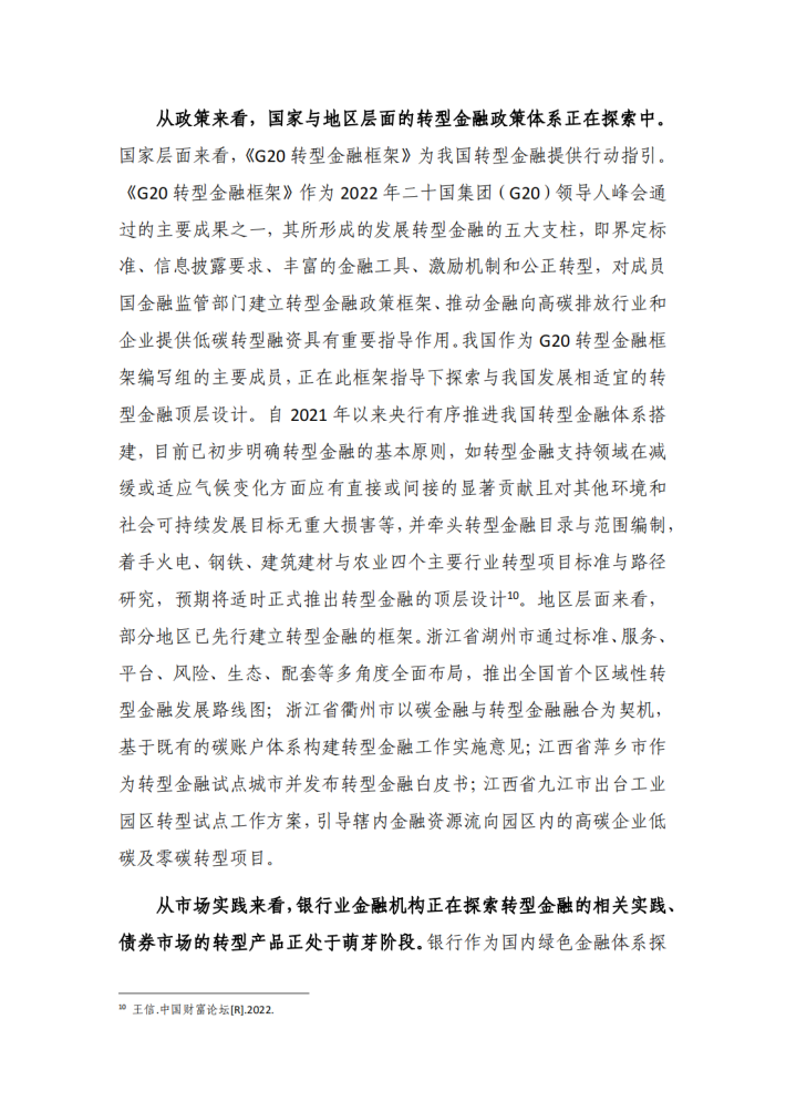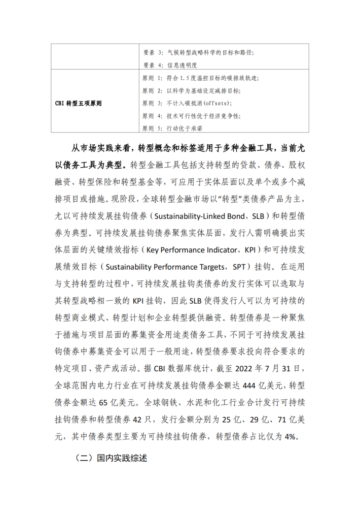 当前转型金融正在成为绿色金融的有效补充,为高碳行业的资金需求提供了融资渠道。国内外政府部门与相关组织陆续提出转型金融原则,如《气候转型金融基本指引》《G20转型金融框架》等,为发展转型金融提供稳定引导,转型金融市场也在萌芽中快速发展。