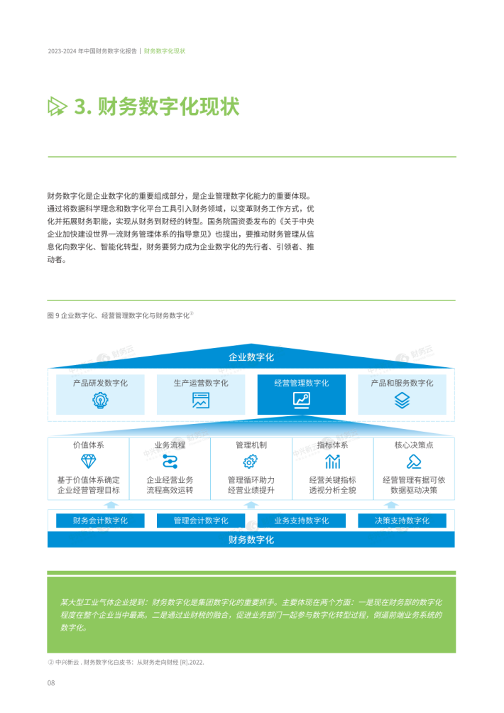 数字经济背景下,数据作为新型生产要素,已成为提升企业可持续竞争力的核心动能,企业为此纷纷加快数字化转型布局,推动全新管理变革。财务数字化作为企业数字化的重要组成部分,在数字技术的驱动下,亦将迎来未来发展的必然趋势:让数据走向决策、从财务走向财经。
