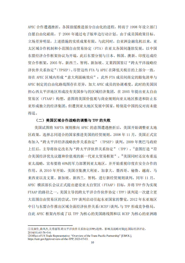 3.尽快启动和完成中国加入CPTPP和DEPA谈判进程。尽快组建CPTPP谈判工作组,并将东盟国家和拉美国家作为加入CPTPP的谈判重点对象,争取日本和墨西哥支持中国加入CPTPP。推动以DEPA为基础展开谈判达成涵盖更多APEC成员的亚太数字经济伙伴协议。