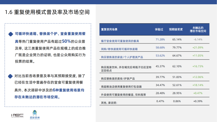 一定程度上代表了公众对重复使用模式背后环保价值的认知度较高,体现了近些年可持续生活方式推广的初步成效