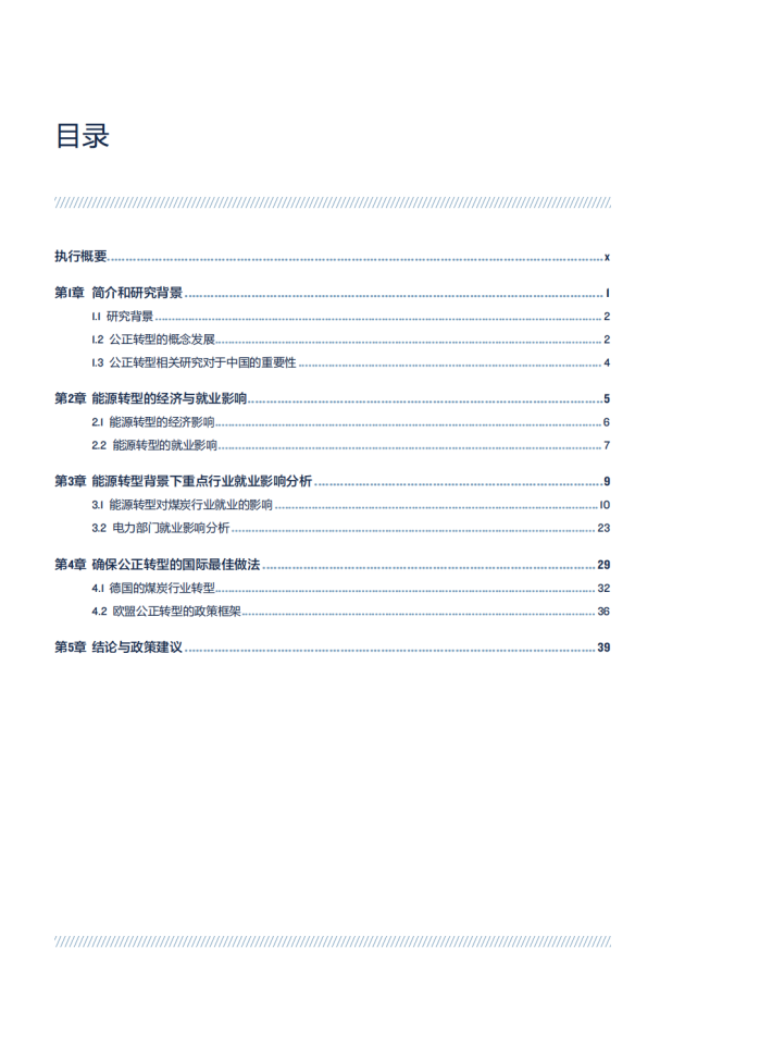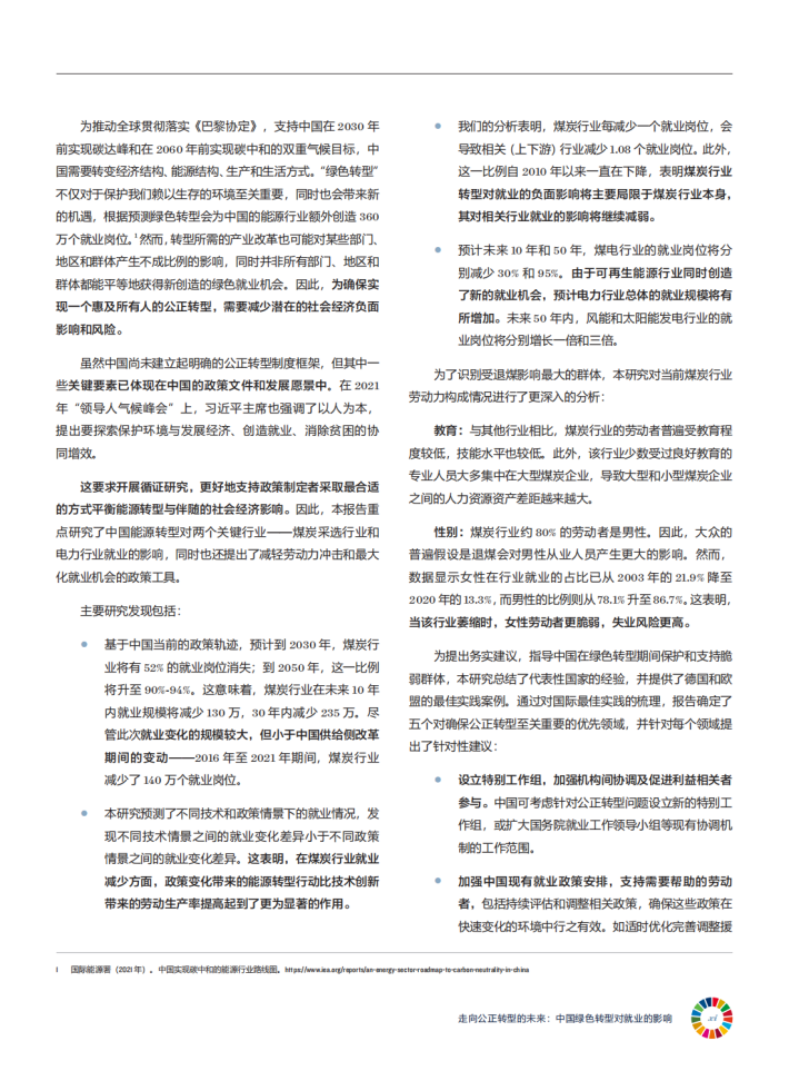 虽然中国尚未建立起明确的公正转型制度框架,但其中一些关键要素已体现在中国的政策文件和发展愿景中。