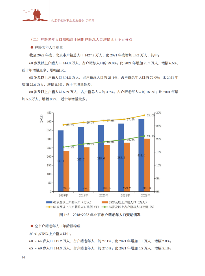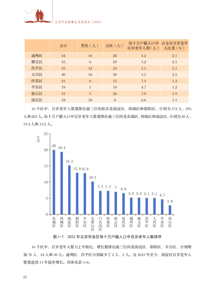 健全基本养老服务体系。织密居家社区养老服务网络,全年发展建设养老助餐点153家,全市累计建成1489家,缓解居家老年人用餐难题。全市累计建成运营社区养老服务驿站1429个、养老照料中心293个;2022年新建养老家庭照护床位3682张,累计建成9千余张。推进机构养老服务建设,全市已建成运营养老机构578家,床位11.2万张。印发《北京市社区养老服务驿站服务质量星级评定管理办法(试行)》《北京市养老机构服务质量星级评定管理办法(试行)》,共评定星级社区养老服务驿站814家、星级养老机构458家。修订出台《北京市老年人能力评估实施办法(试行)》,取消失能老年人护理补贴消费限制,目前,失能老年人护理补贴可在全市1.1万余家养老助残服务商任意消费使用。