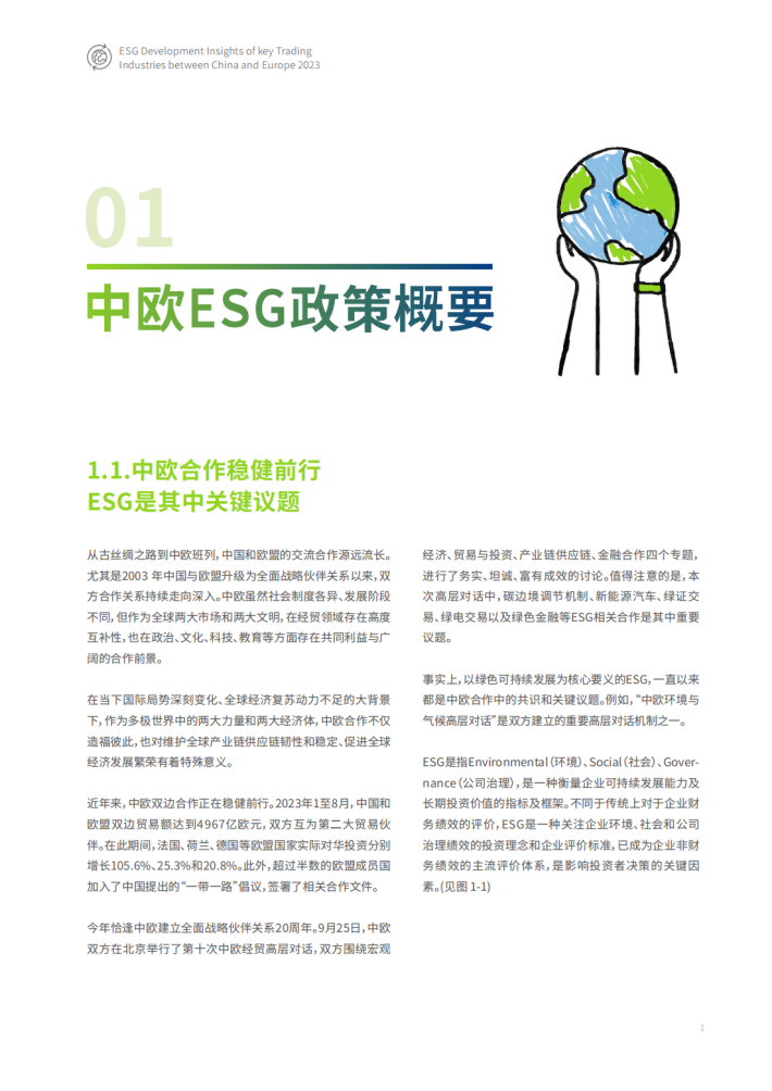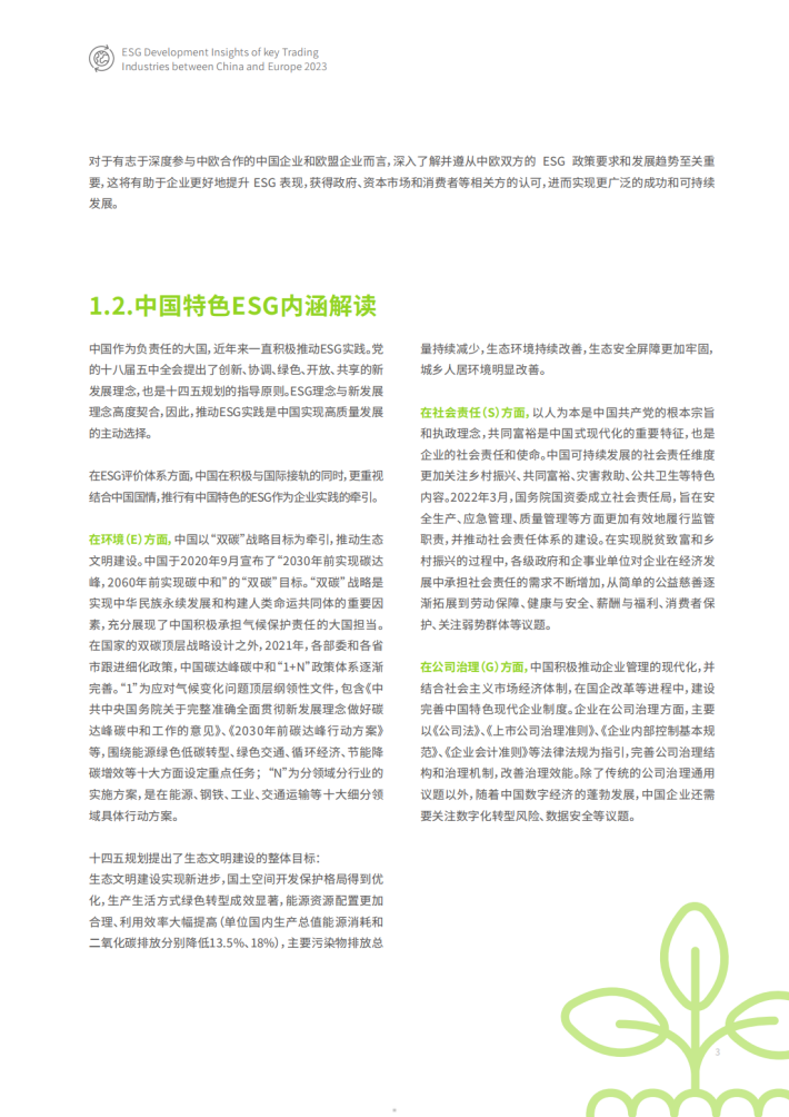 事实上,以绿色可持续发展为核心要义的ESG,一直以来都是中欧合作中的共识和关键议题。例如,“中欧环境与气候高层对话”是双方建立的重要高层对话机制之一。