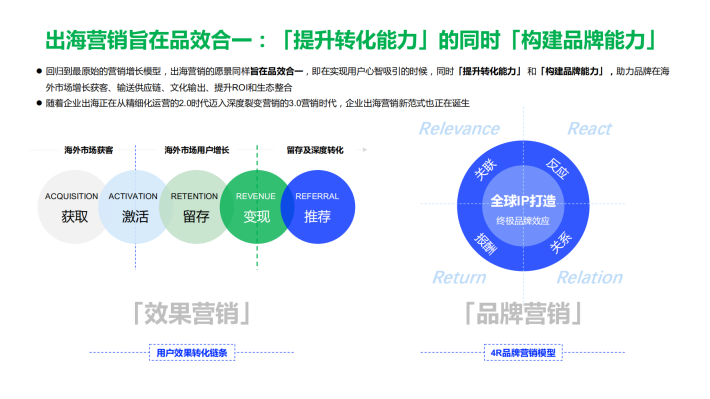 中国企业出海产品不断迭代、丰富和升级,消费场景也日趋多元。随之而来的便是,出海营销市场竞争加剧,从此前的增量角逐时代进入存量角逐时代
