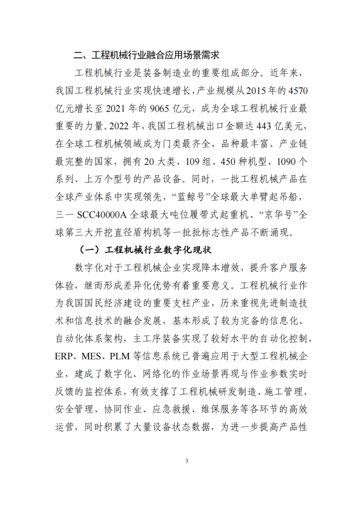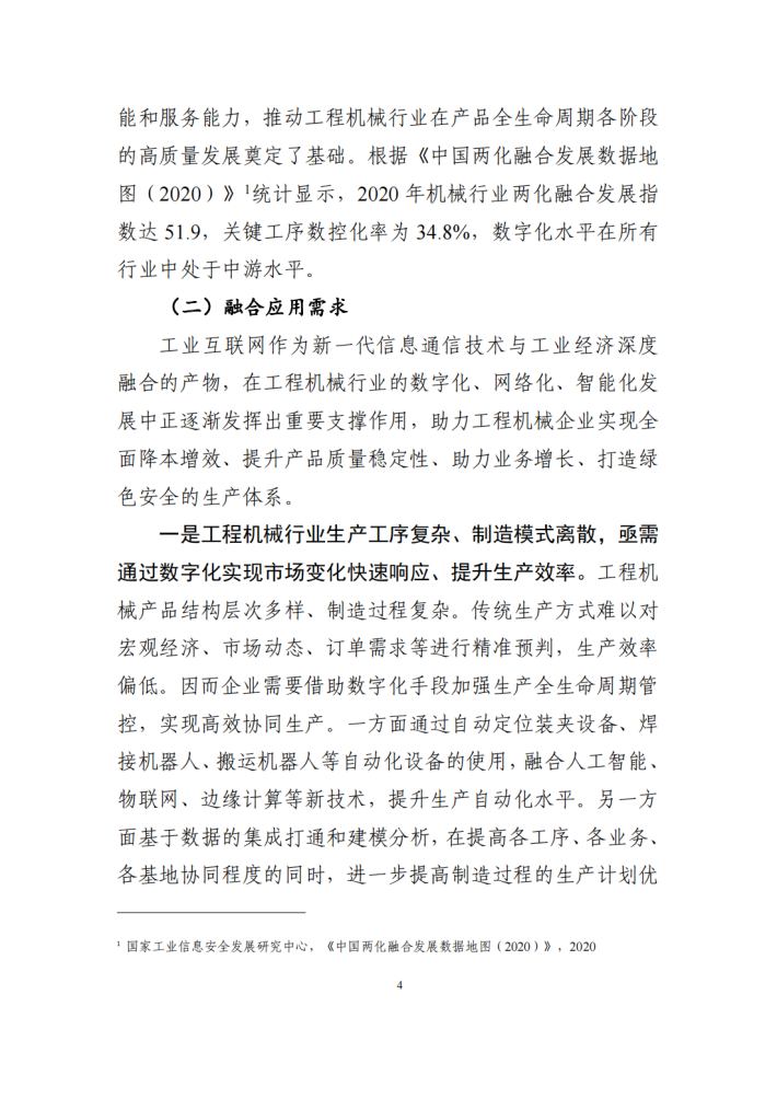 工程机械行业是我国国民经济发展的重要支柱产业,在我国重大工程建设、新型城镇化建设进程中发挥了至关重要的作用。近年来,工程机械行业不断推进工业互联网建设实践,提质、增效、降本、绿色、安全发展取得积极成效,数字化车间、“5G+工业互联网”和5G工厂示范标杆不断涌现。为加速推动工程机械企业数字化转型由点状探索向规模化普及,工业和信息化部指导工业互联网产业联盟和中国工程机械工业协会,会同政产学研用各方共同研究编制了《工业互联网与工程机械行业融合应用参考指南》,旨在为工程机械行业工业互联网建设过程中的需求场景识别、应用模式打造、关键系统构建和组织实施方法提供参考借鉴。