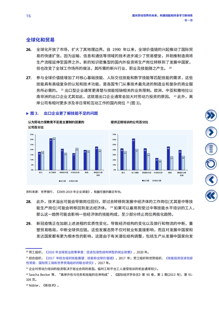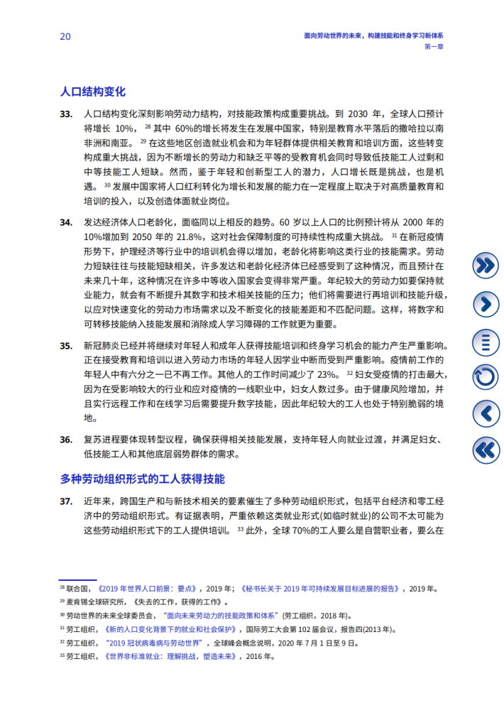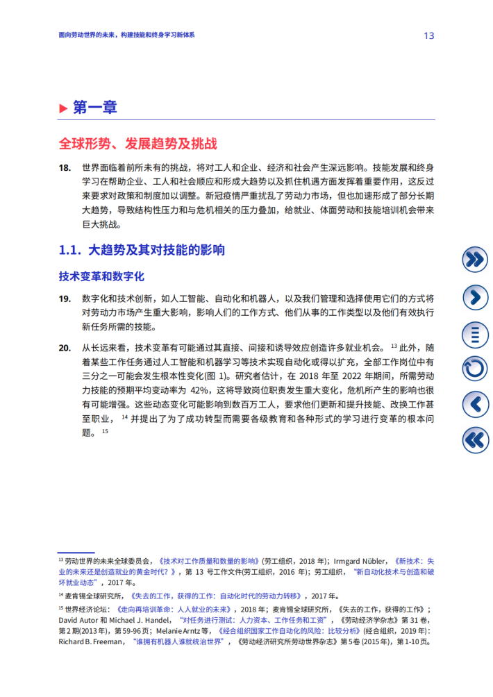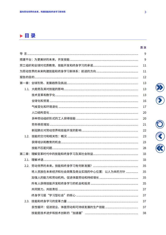 技能不匹配是当今劳动力市场面临的日益严峻的挑战,对工人、企业和劳动世界的未来都产生多重影响。尤其在后疫情复苏过程中,重启对人的能力投资势头反映出强烈的紧迫感和共同的责任感,要求从终身学习的角度更加重视技能发展和增强人的权能。在人生的各个阶段,技能培训、再培训和技能升级是人们获得体面劳动机会的先决条件和加速器,助力其向劳动力市场和在劳动力市场内部进行平稳过渡。