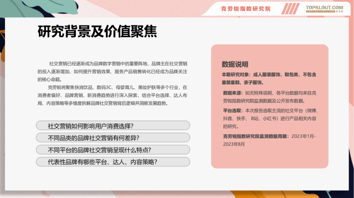克劳锐将聚焦快消饮品、数码3C、母婴育儿、美妆护肤等多个行业,在消费者偏好、品牌营销、新消费趋势进行深入探索,结合平台选择、达人布局、内容策略等多维度拆解品牌社交营销背后逻辑并洞察发展趋势。