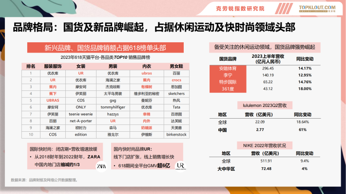 国货及新品牌崛起,占据休闲运动及快时尚领域头部