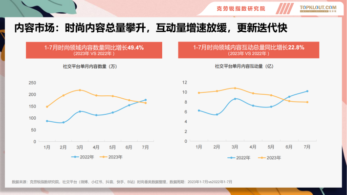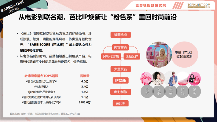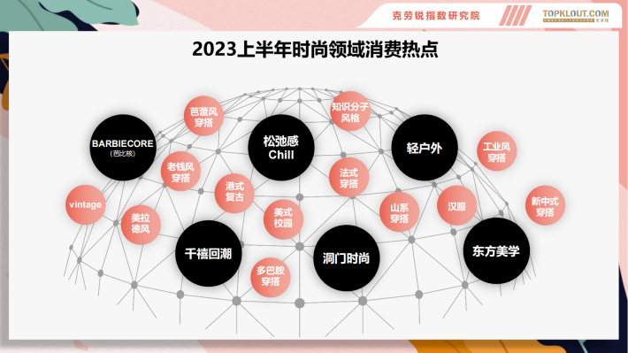 时尚内容总量持续增长,更新迭代快,2023上半年,行业涌现六大消费热点BARBIECORE、洞门时尚、轻户外、干禧回潮、东方美学、松弛感穿搭
