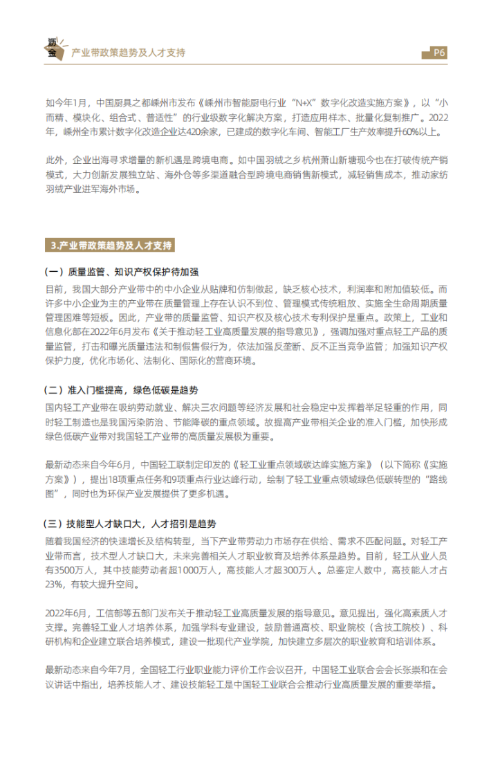 新的技术革命在重塑经济发展,科技创新、数字化转型、跨境电商等都是轻工产业集群不可忽视的重要增长点。未来,我国轻工产业集群只有不断塑造新优势、开辟新赛道,才能更好地促进行业提质增效、巩固发展优势。