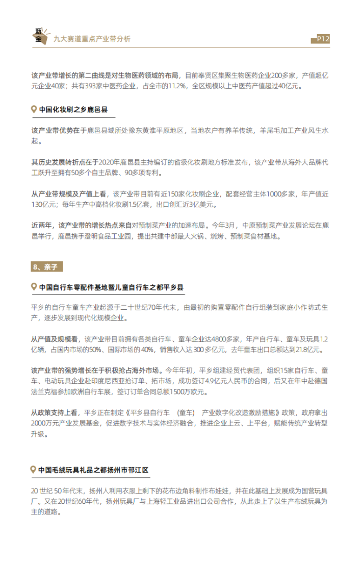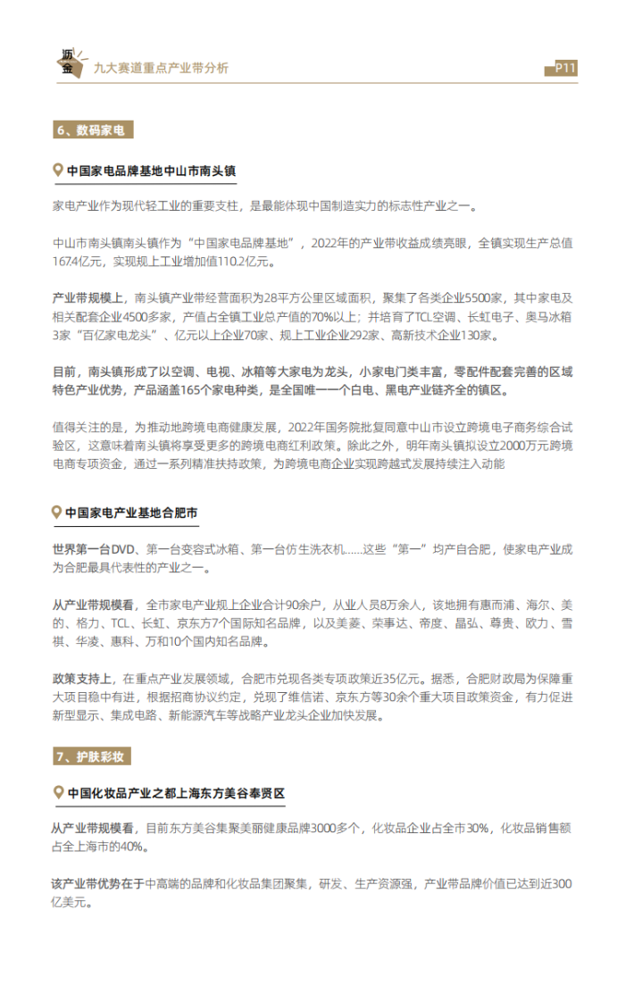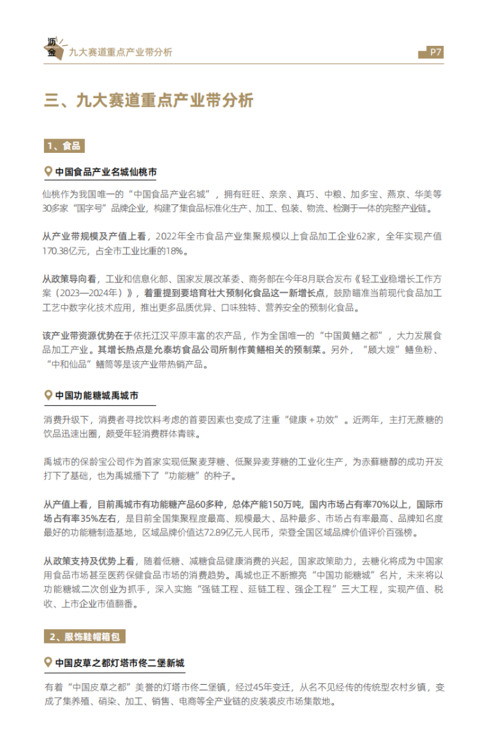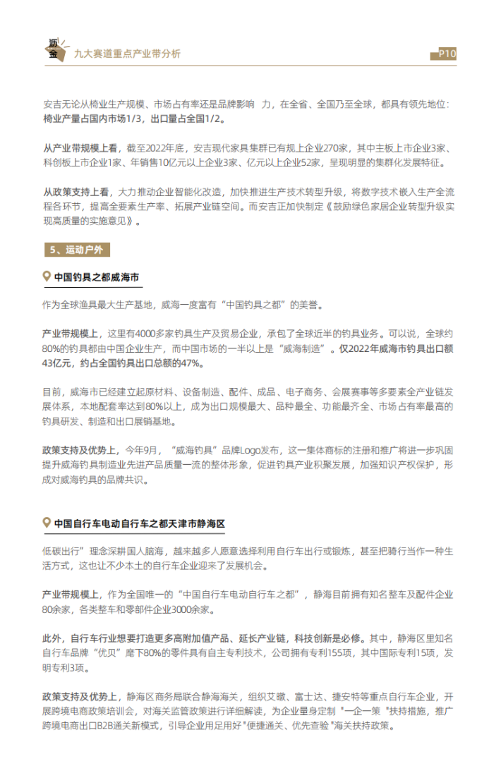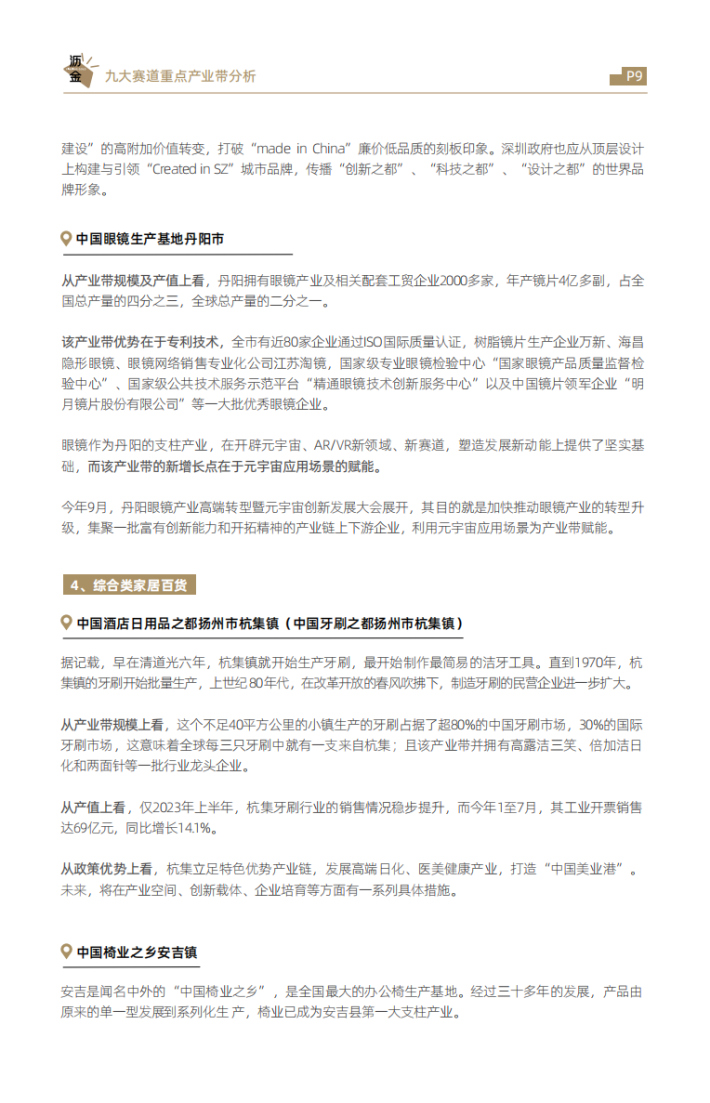 从增长上看,家电、家居、食品等是产业集群稳增长的重点领域。今年7月,工业和信息化部等3部门联合印发《轻工业稳增长工作方案(2023—2024年)》(以下简称《方案》),明确了一系列轻工业稳增长举措,提出着力稳住家居用品、塑料制品、造纸、皮革、电池、食品等六大万亿级规模行业,同时培育壮大老年用品、婴童用品、文体休闲用品、生物制造和预制化食品等市场空间大的新增长点。
