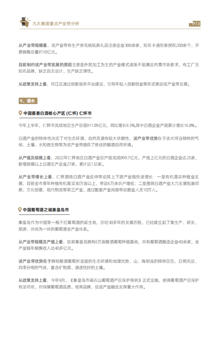 产业集群的发展在中国轻工业经济中发挥着重要作用。从重点地区的产业带看,广东珠三角地区聚集着众多家电、轻工机械、玩具、家具等轻工业产业带,成为全球知名制造中心;浙江的五金、礼品、箱包、日用品吸引了全球买家和供应商,义乌也是全球最大的小商品批发市场之一;江苏苏州以高新技术产业为主导,引入智能制造、数字化工厂、绿色工厂、科技创新等类型轻工企业,吸引了众多国内外投资。