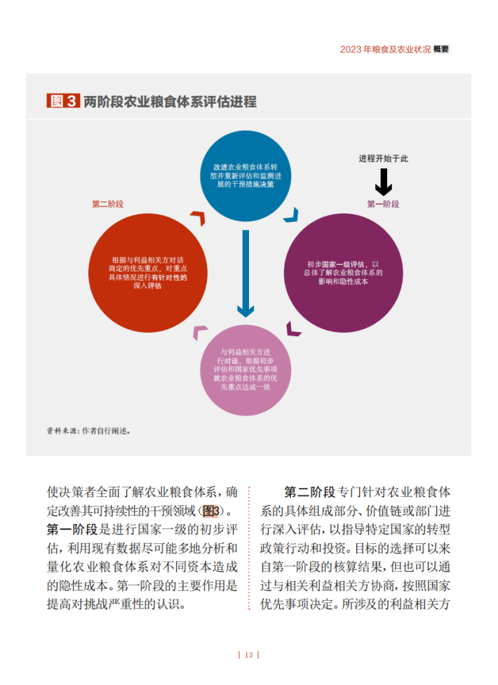 国际社会愈发认识到,转变农业粮食体系以提高其效率、包容性、韧性和可持续性,是一项必不可少的全方位设计规划,有助于实现《2030年可持续发展议程》。变革的东风促成了联合国秘书长于2021年9月召开了首届联合国粮食体系峰会,并由意大利政府于2023年7月下旬在联合国粮食及农业组织(粮农组织)举办联合国粮食体系峰会阶段成果总结推进大会。各国在会议上展现出强烈的政治意愿,各利益相关方支持通过创新解决方案和战略,努力转变农业粮食体系,并利用转型成果,促进所有可持续发展目标取得进展。