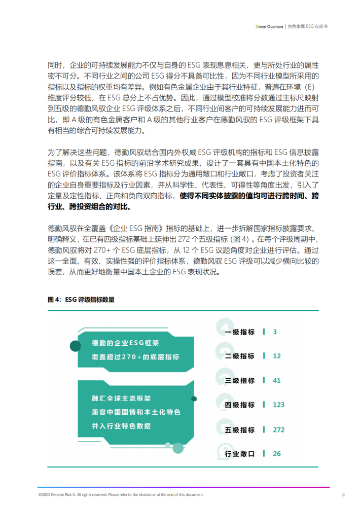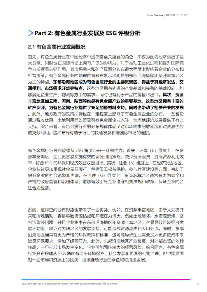 本白皮书关注的行业敞口为CICS一级行业下定义的有色金属行业,全行业共纳入评级93家A股主板上市企业。CICS定义的有色金属行业是指有色金属冶炼与压延加工品的生产制造。作为世界上最大的有色金属生产和消费国,中国有色金属行业在全球市场中占据着重要地位,不仅为国内经济做出了巨大贡献,同时也在国际市场上拥有广泛的影响力,对于推动工业化进程和提升国际竞争力发挥着关键作用。有色金属行业也面临众多的挑战。例如,有色金属的冶炼和制造中涉及大量的能源消耗,产生大量废弃物。然而,通过合理利用资源,积极采取措施减少碳排放,有色金属行业能够对我国的长期绿色可持续发展策略和“双碳”目标做出积极贡献。因此,本白皮书将从风控视角出发,重点分析有色金属行业及重点企业的ESG评级指标表现。旨在帮助投资者、金融机构和监管者深入理解有色金属行业存在的ESG机会与风险,从而鼓励和推动企业走向更加绿色、安全和责任的发展道路,促进社会整体可持续发展。