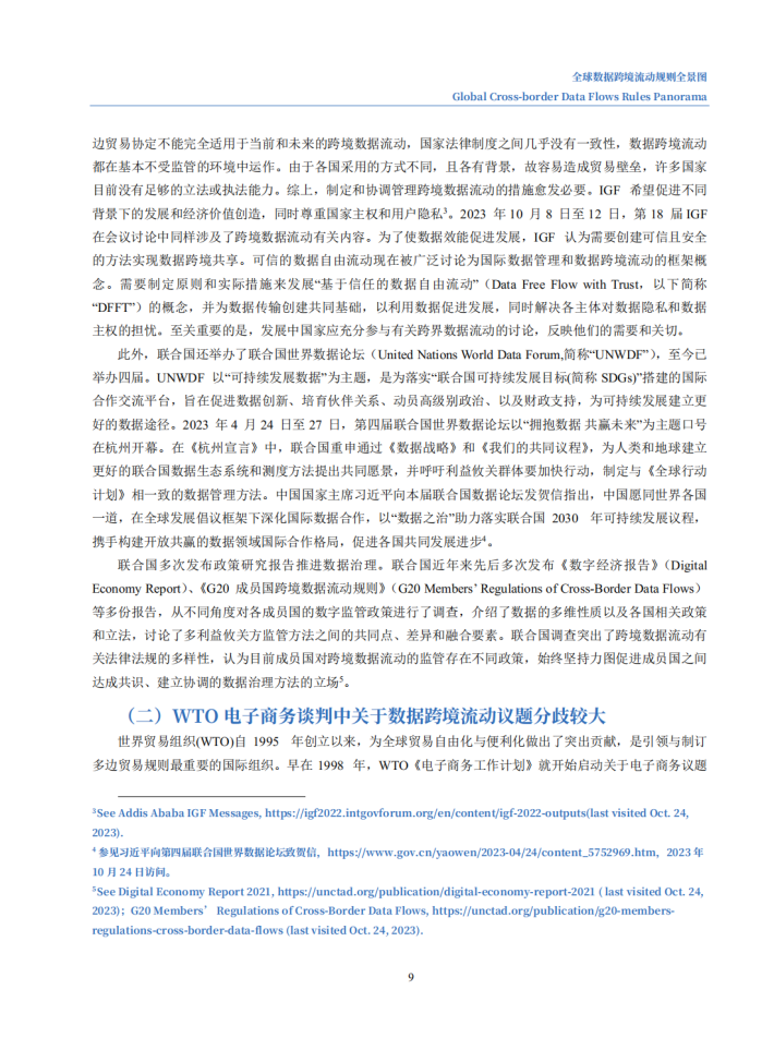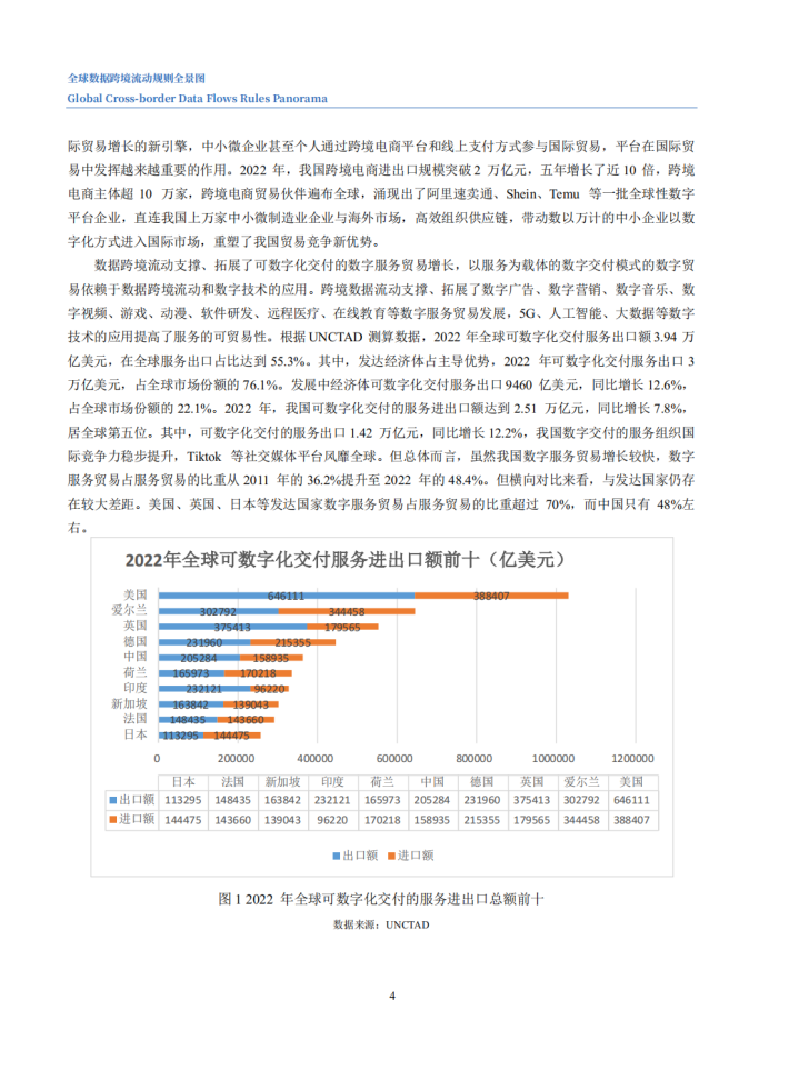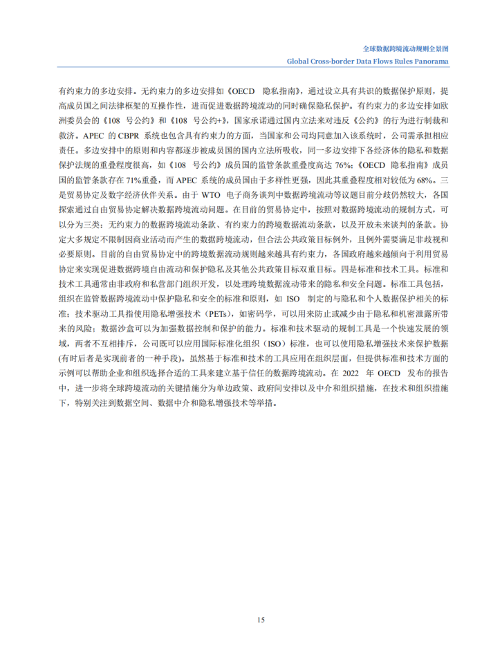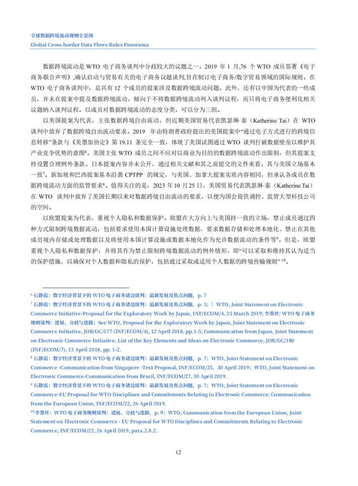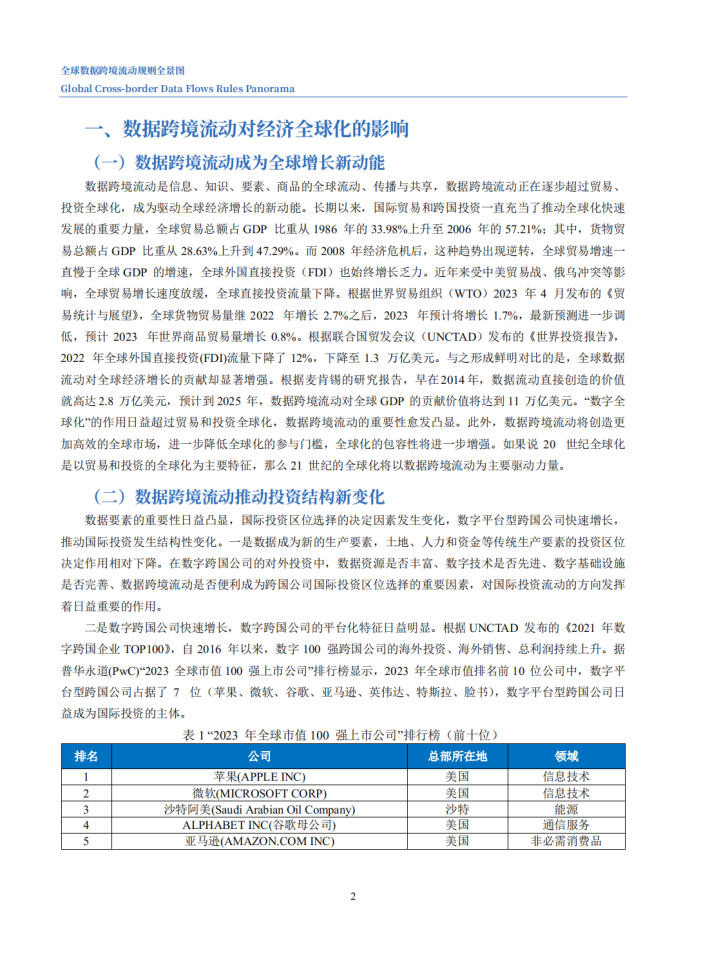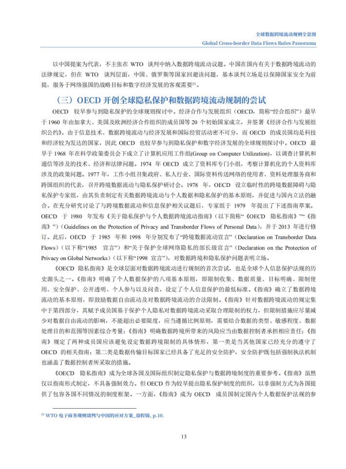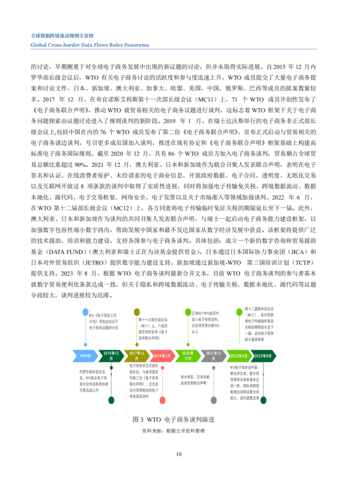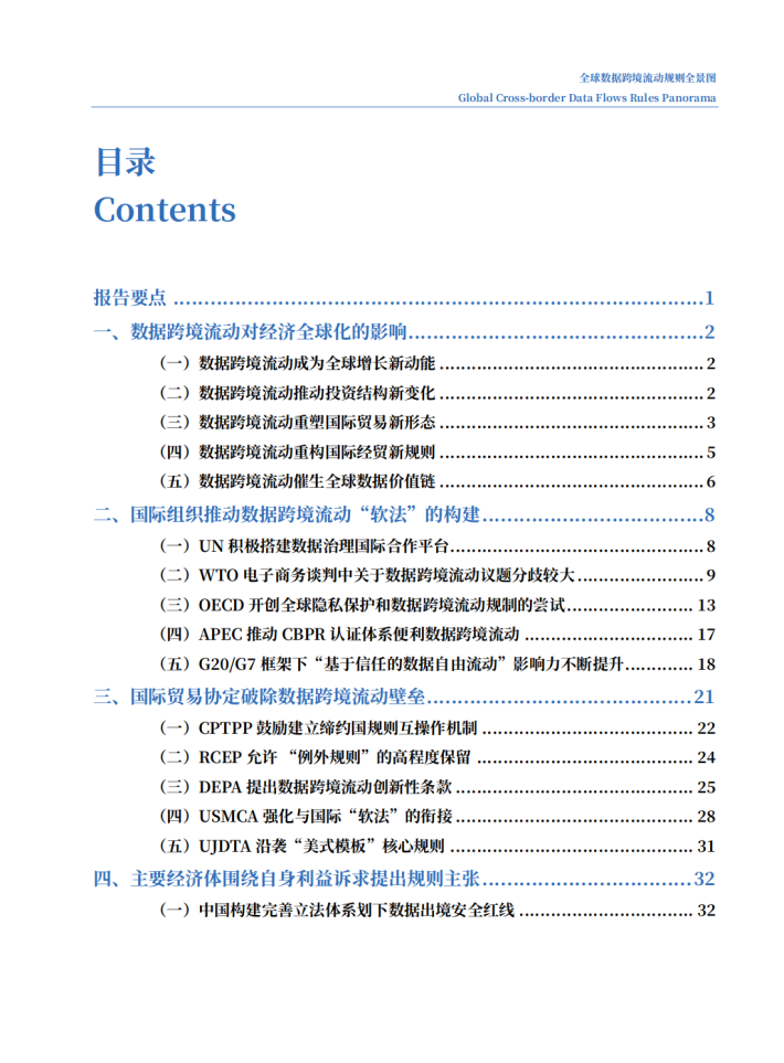 当前,数据跨境流动正在逐步超过贸易、投资全球化,成为驱动全球经济增长的新动能。本次报告,从国际组织、国际贸易协定、经济体三个层次切入,聚焦十大国际机制安排(五个国际组织与五个国际贸易协定)与十二大经济体,分析其关于数据跨境流动的规则与特点,并研判未来规则发展趋势,为我国参与全球数字经济规则的制定提供借鉴与参考。