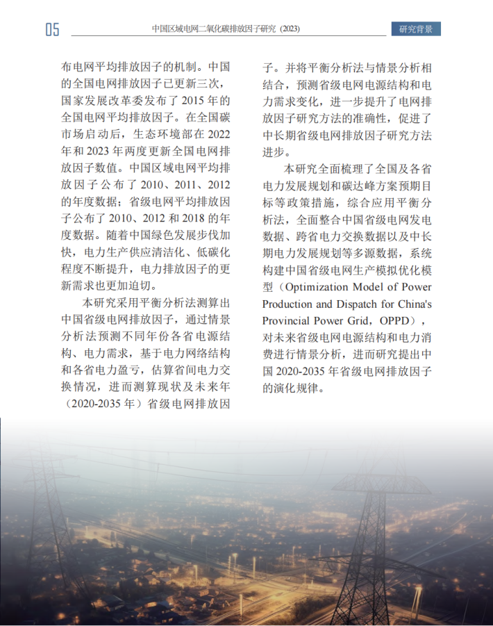 区域电网二氧化碳排放因子是精准核算电力消费引起二氧化碳间接排放的基础参数。本研究采用平衡分析法,根据省级电网发电数据、跨省电力交换数据以及中长期电力发展规划等数据,构建省级电网生产模拟优化模型,通过情景分析评估未来不同情景下,省级电网电源结构和电力消费,分析中国2020-2035年不同情景下区域和省级电网二氧化碳排放因子。