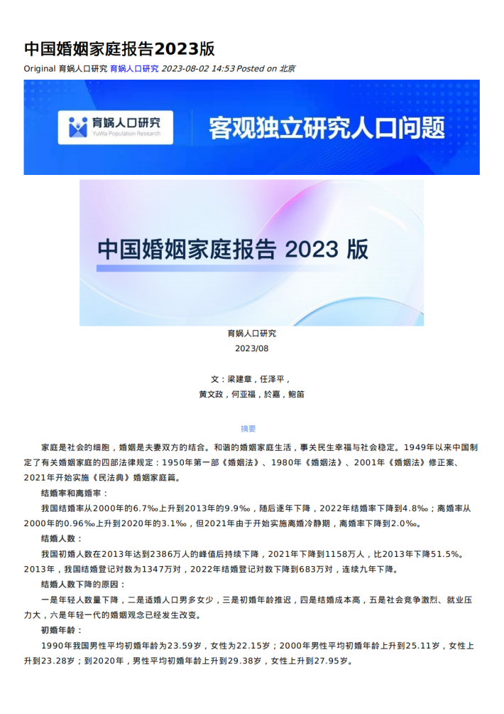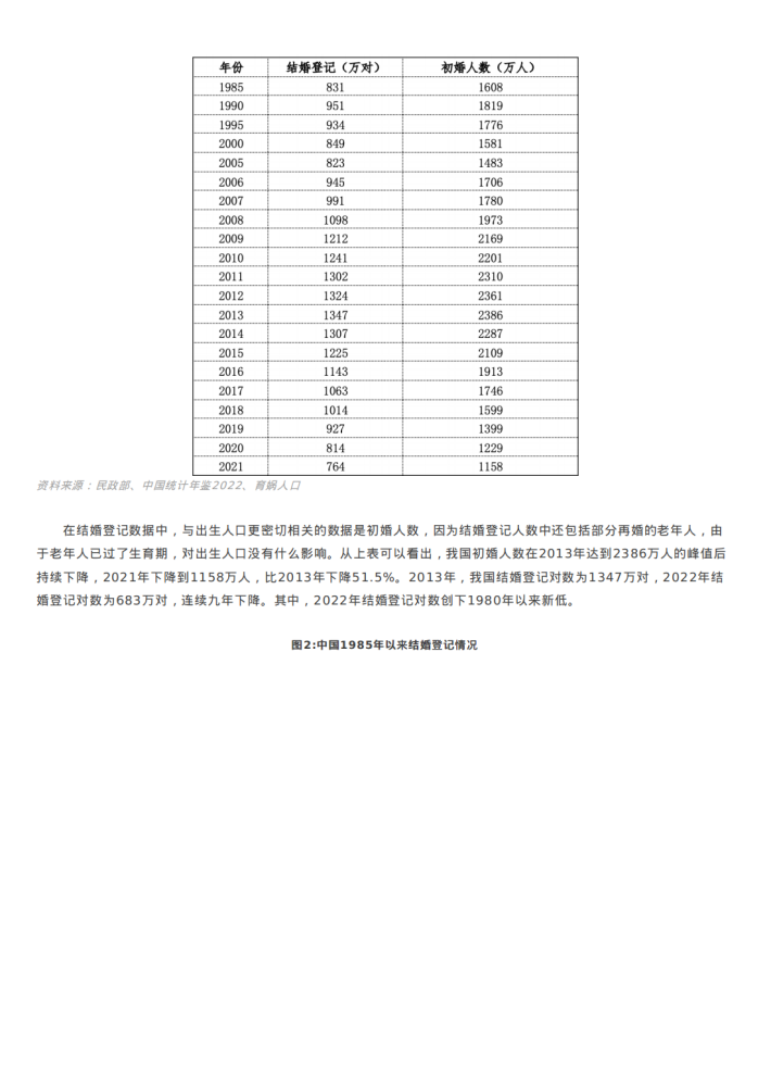 从2013年到2021年,仅仅八年时间,我国初婚人数就减少了一半,预示着出生人口和生育率进一步下降的趋势。我国出生人口从2017年到2022年已经是连续六年下降,总和生育率从2017年的1.58下降到2022年的1.07,背后的原因是与初婚人数不断下降分不开的。