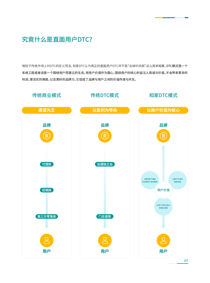 知家DTC成立于2015年,一直致力于“缩短客户转型创新周期”和“降低客户创新变革成本”,以帮助客户快速将概念转化为价值,交付给最终用户,实现品牌增长。直面用户DTC的营销模式是知家DTC长期深耕的领域,我们始终带着“为用户的核心利益注入真诚与价值”的使命,为企业及营销操盘手带来前沿的DTC洞察与发现。