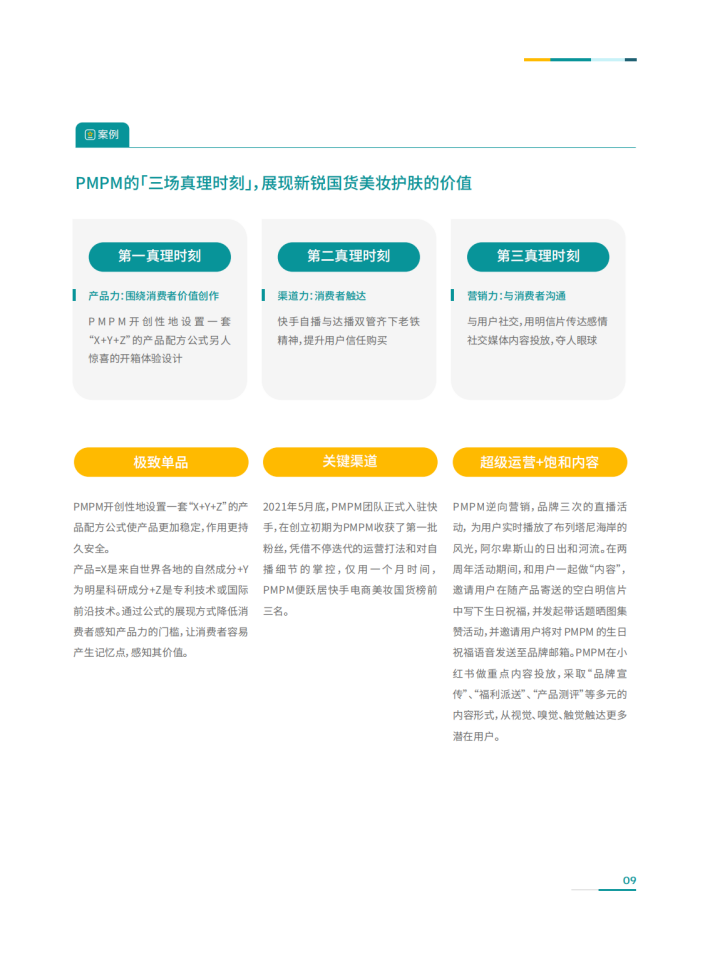 2022年,我们发布了《直面用户的营销思维--知家DTC品牌营销白皮书》,推出了如何成就DTC品牌的双环模型,阐述了快速帮助企业从0-1打造DTC品牌及实现品效销闭环增长离不开的六大要素:超级用户、极致单品、品类王者、饱和种草、超级运营及关键渠道。
