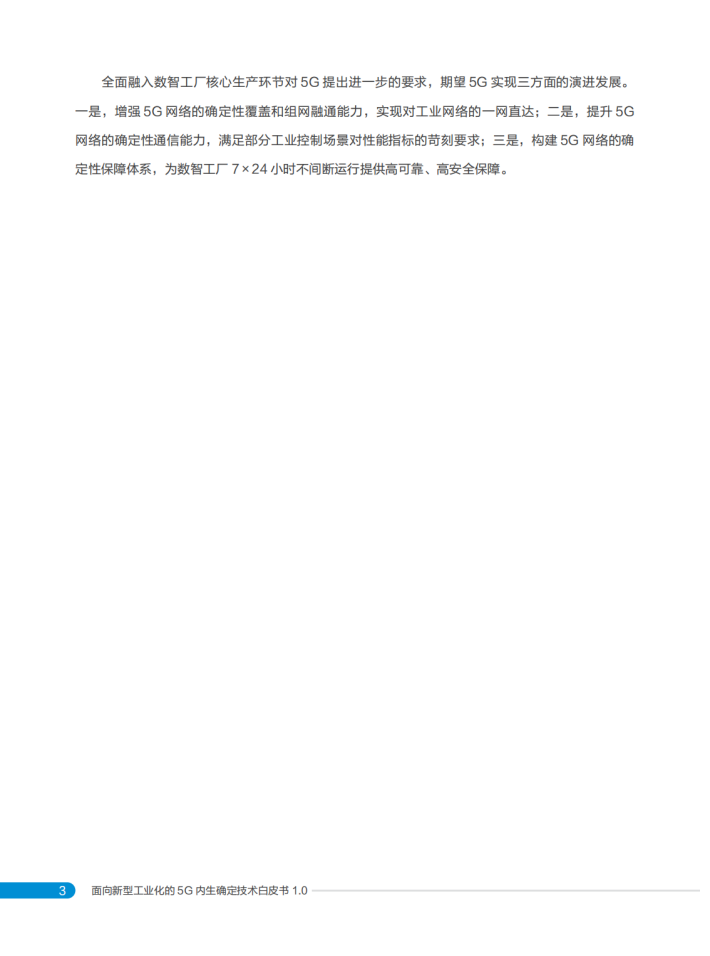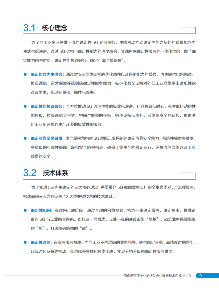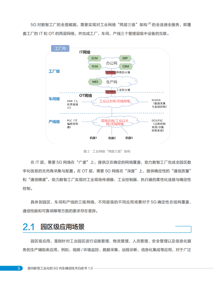 基于中国移动对5G赋能数智工厂的最新理解,特编写本白皮书,首先分析了5G赋能数智工厂的发展态势,聚焦5G确定性的需求场景,阐述了5G内生确定的“确定能力内生供给、确定性能极致服务、确定可靠全局保障”核心理念,以及涵盖三大类12项创新能力的技术体系,并展示了在数智工厂中的应用与实践,期望为5G赋能数智工厂融合技术创新和产业发展提供新的思路和方向。
