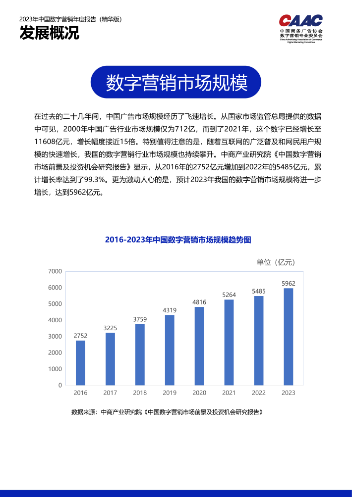为推动行业的进步与发展,中国商务广告协会计划从2023年起推出《中国数字营销行业年度报告》,由中国商务广告协会数字营销专业委员会牵头,行业各有关机构共建。报告总结中国数字营销行业的创新实践、现状与问题,探究数字营销的核心能力,跟踪前沿技术及营销应用实践,寻找行业新定位及实现高质量发展的路径方法。