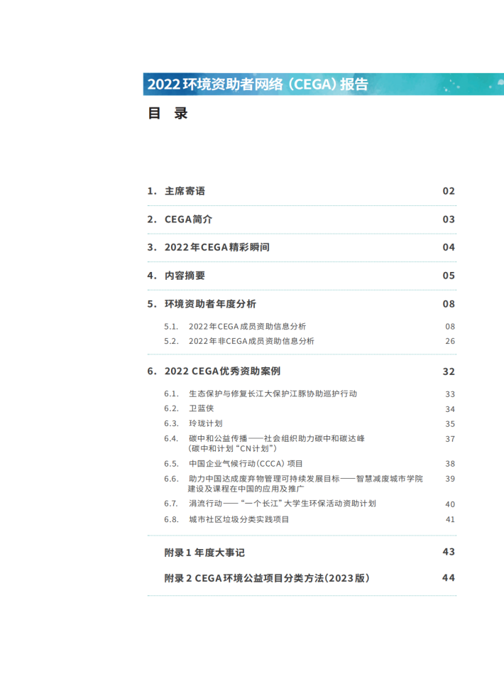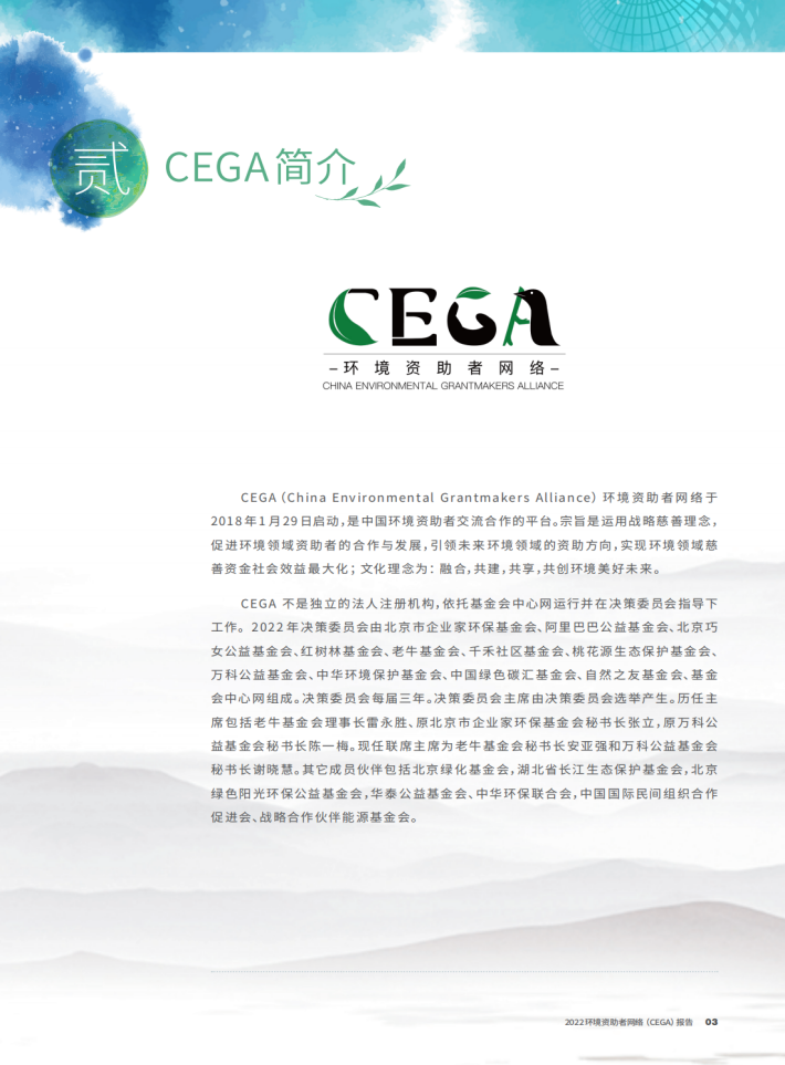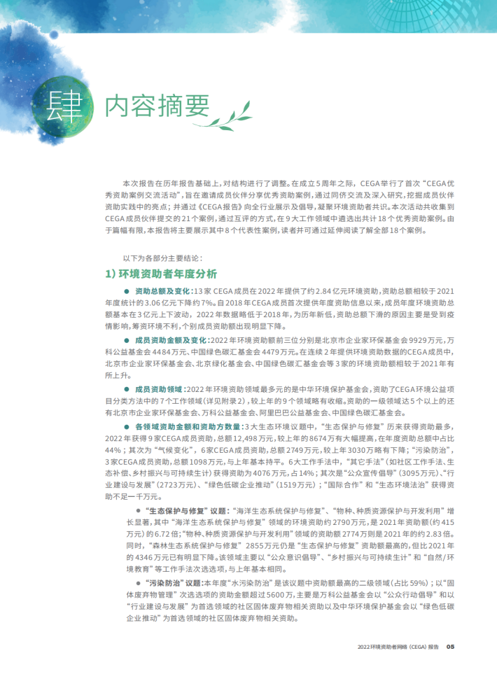 ●资助总额及变化;13家CEGA成员在2022年提供了约2.84亿元环境资助,资助总额相较于2021