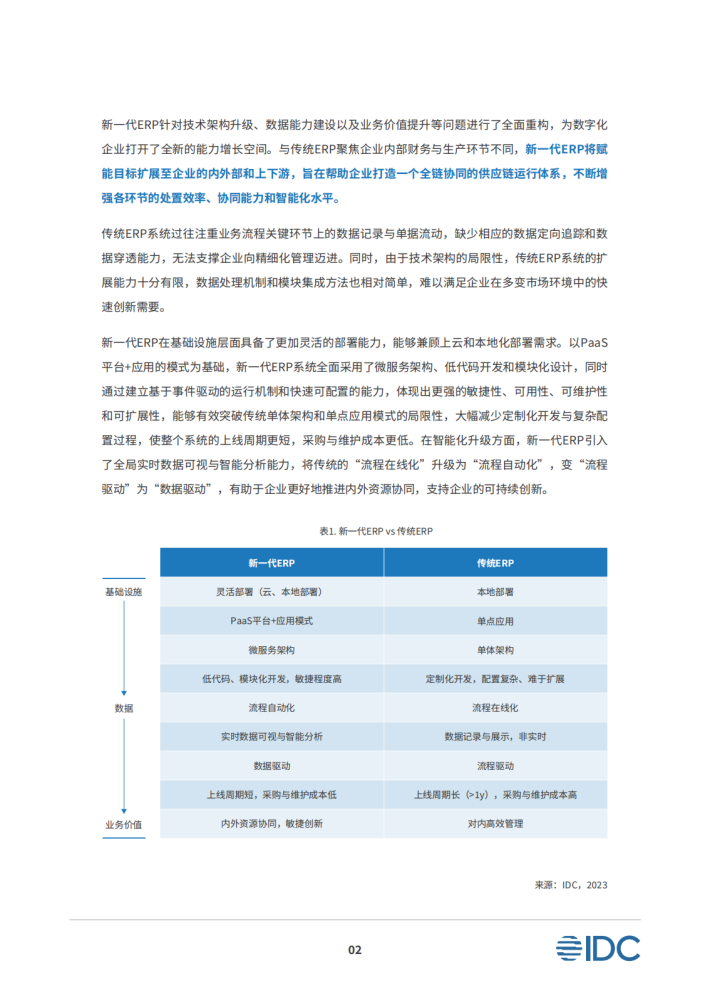新一代ERP针对技术架构升级、数据能力建设以及业务价值提升等问题进行了全面重构,为数字化企业打开了全新的能力增长空间。与传统ERP聚焦企业内部财务与生产环节不同,新一代ERP将赋能目标扩展至企业的内外部和上下游,旨在帮助企业打造一个全链协同的供应链运行体系,不断增强各环节的处置效率、协同能力和智能化水平。