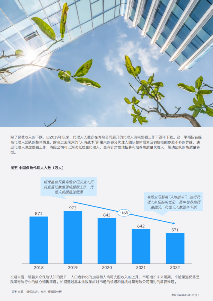 寿险行业代理人渠道已有三十余年的发展历程,从最开始的粗放式扩张,逐步进入到精细化发展阶段。近年来,代理人渠道进入发展瓶颈期,面临保费增速下降、代理人队伍流失等问题,转型迫在眉睫。