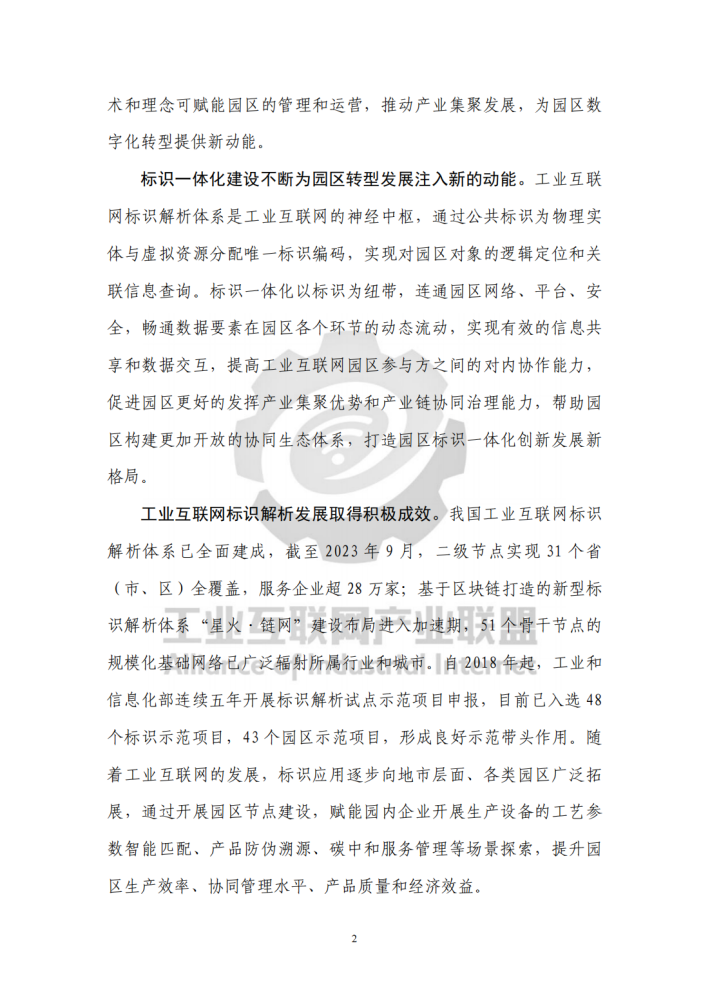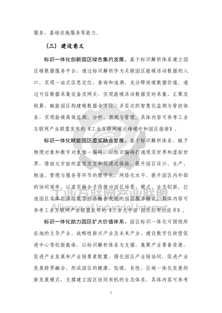 当前,工业互联网正在赋能千行百业的数字化转型,推动我国数字经济进入全面发展的新时代,并成为高质量发展的重要引擎。为巩固创新中国工业互联网发展模式,加快工业互联网高质量发展,推进新型工业化进程,工业和信息化部加强统筹协调,围绕网络是基础、平台是中枢、安全是保障、数据是核心、标识是纽带,进一步完善政策体系,出台实施标识“贯通”三年行动计划,一体推进各项工作。结合工业和信息化工业互联网一体化进园区“百城千园行”活动通知提出的政策、网络、标识、平台、安全、资源、应用等七进园区的具体内容,以及工业互联网产业联盟组织开展的园区调研,为推动工业互联网标识解析体系赋能园区转型升级,工业互联网产业联盟组织编写了《工业互联网园区标识一体化建设指南》。