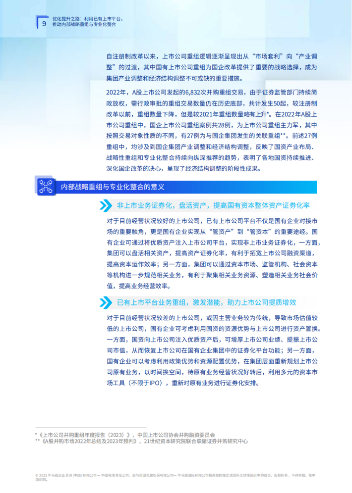 历经近四十年的积累和磨砺,中国的资本市场和国有上市公司已经走到了改革的深水区。资本市场方面,注册制改革已全面推进,至此,资本市场对创新性和成长性的关注已达到了空前的高度,市场估值体系和估值逻辑也发生了重大变化。不再仅仅依靠传统的市盈率来评估,而是更加注重上市公司的价值创造能力,从市场机制的引入、公司效益的提升、公司治理的提升,到规模效应与创新发展的融合等方面进行全面考虑。这样的变化对国有上市公司提出了更高的要求。