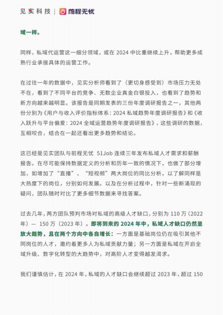 分析师认为:在即将到来的2024年中,私域人才需求仍然保持快速增长的态势。