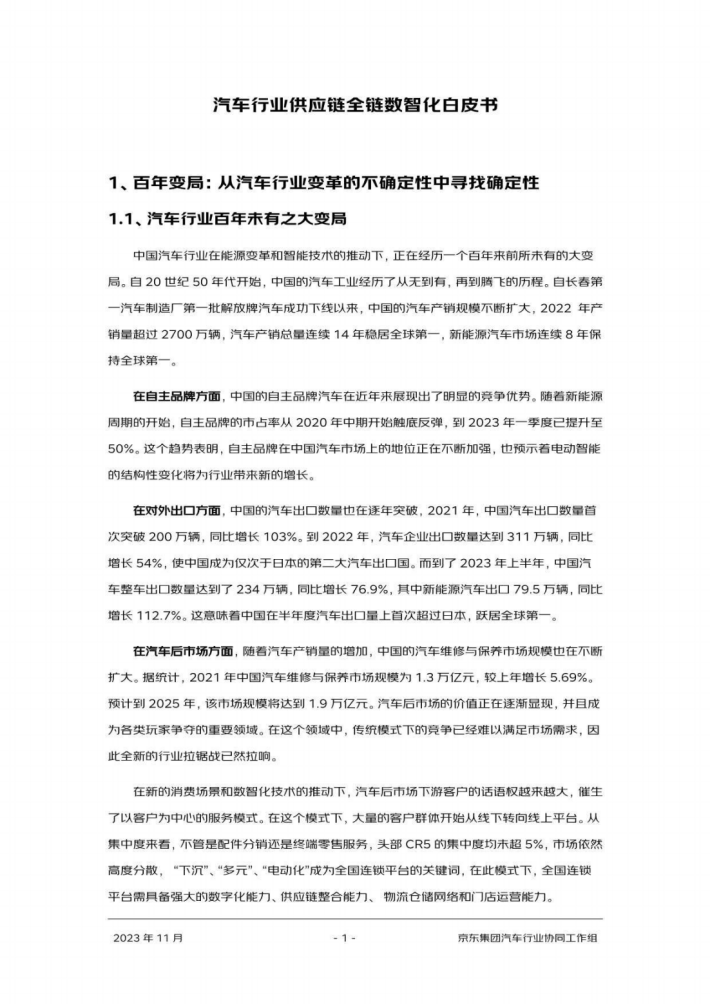 中国汽车行业在能源变革和智能技术的推动下,正在经历一个百年来前所未有的大变局。自20世纪50年代开始,中国的汽车工业经历了从无到有,再到腾飞的历程。自长春第一汽车制造厂第一批解放牌汽车成功下线以来,中国的汽车产销规模不断扩大,2022年产销量超过2700万辆,汽车产销总量连续14年稳居全球第一,新能源汽车市场连续8年保持全球第一。