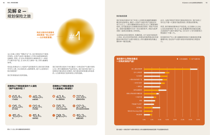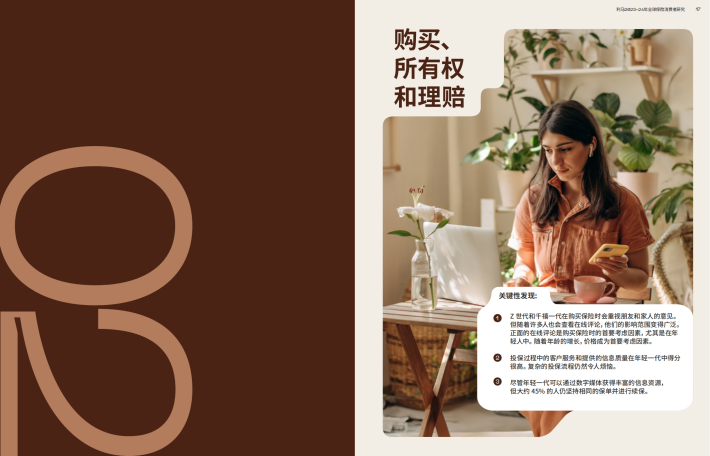 然而,数字化是一把双刃剑。心理健康问题与压力之间存在明显的相关性,这归因于社交媒体在我们的数字生活中无处不在。[见解4,虚拟生活:诅咒还是治愈?]。然而,如果谨慎加以利用,数字化将成为帮助消费者做出明智决策的有力工具。事实上,在购买过程中首要考虑的因素是“网上好评”——比价格更重要。[见解2,规划保险旅程]。值得注意的是,这是历年全球保险消费者研究中第一次没有把“价格”列为最重要的决策因素。