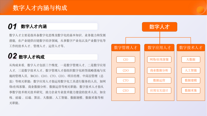伴随着大数据、人工智能、云计算等数字技术的发展,数字经济逐渐释放强劲动能,数字素养已经成为公民必备的基本能力。党的二十大报告强调,加快发展数字经济,促进数字经济和实体经济深度融合,打造具有国际竞争力的数字产业集群。近年来,我国人才优势不断积累,科技创新人才队伍建设取得积极进展,为产业链供应链数字经济的高质量发展奠定了雄厚的智力资本。站在新的历史起点,必须加快数字人才建设,决胜新一轮全球科技竞争。
