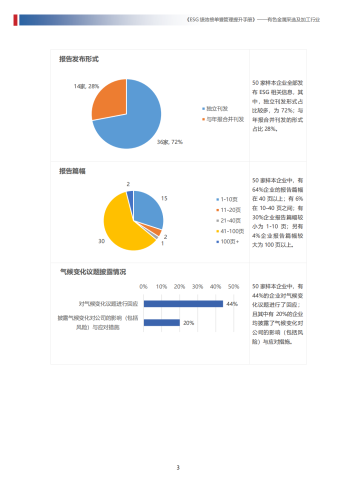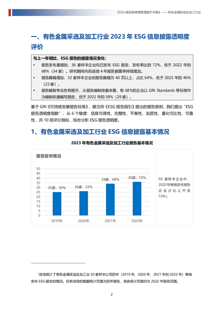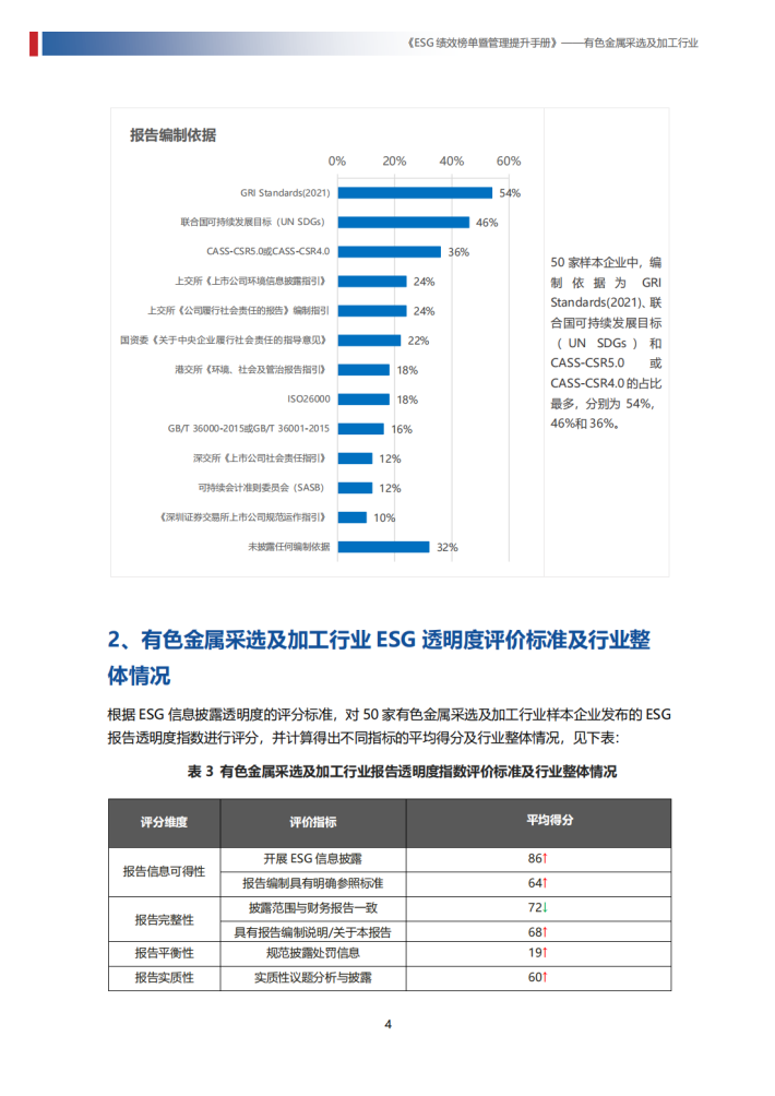 半数以上公司发布的报告中都包括报告编制说明这一内容,其余未包括这一内容的报告发布形式多为与年报合并刊发,待逐步完善补充这一内容,本年度有更多上市公司的报告中包括报告编制说明,多家公司在该部分透明度表现明显进步。