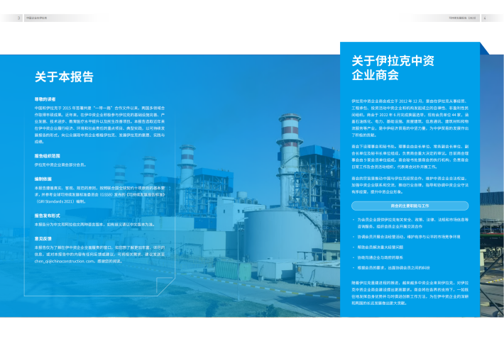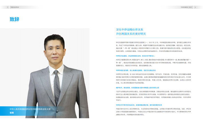 伊拉克是最早同新中国建交的阿拉伯国家之一,2015年12月,中伊两国发表联合声明,宣布建立战略伙伴关系,开启了中伊友好新篇章。建交以来,两国牢牢把握双边关系发展方向,始终相互理解、相互信任、相互支持。值此共建“一带一路”倡议提出十周年和中伊建交65周年之际,我谨代表中国驻伊拉克大使馆,对本报告的发布表示祝贺。以本报告为基础,中资企业将携手各利益相关方,开创中伊战略伙伴关系美好的未来。