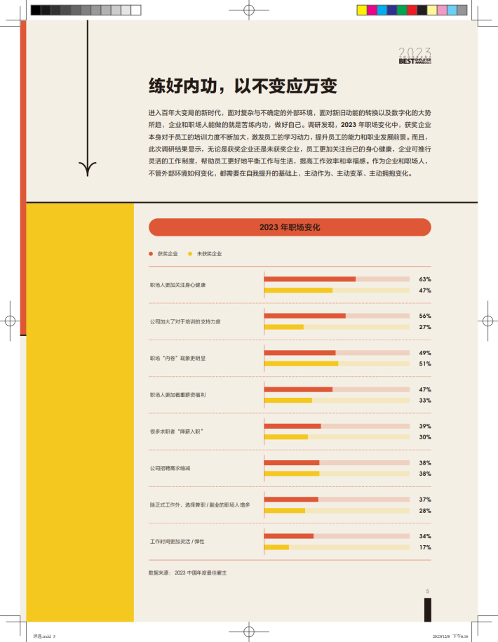 当下,企业与职场人都体会到不易和挑战的同时,也寻机在不确定性中探索新的增长点。于企业而言,合理的利润、充足的现金流、过硬的产品和技术是持续发展的基础;于职场人而言,安全感是首要诉求,但保持开放心态、拥抱不确定性才能更从容地面对职场生活。