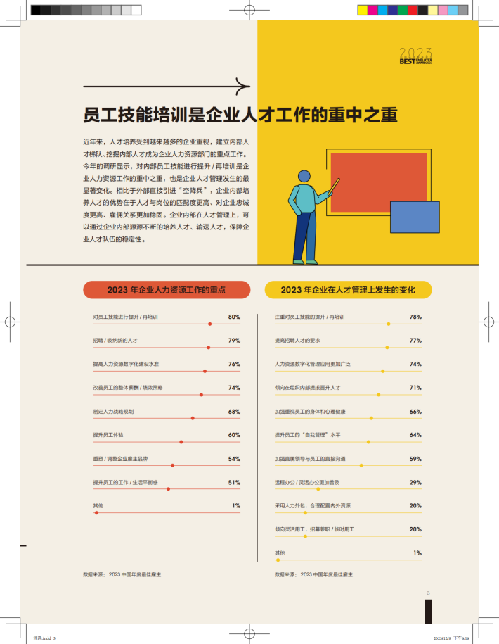 2023年,企业数字化转型进入快车道,越来越多的企业将“数字化转型”从战略意识下沉到管理实践,数字化转型引发的技术革命正在牵动生产关系的变革,员工也能切实感受到产业轮动、技术变革对职业规划、工作方式的影响。数字化新技术与产业的融合更加深入,为制造、能源、医疗等实体产业的转型升级赋能。此外,数字化的新职业、新岗位的不断涌现,也为职场人提供更多的可能性和新的选择。