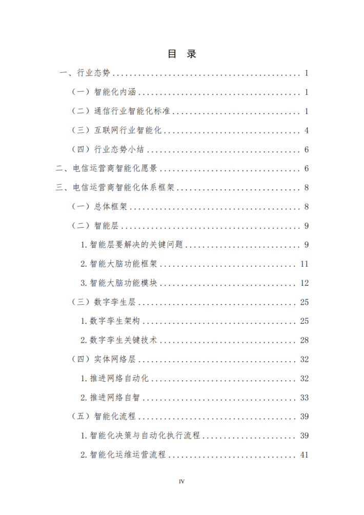为了体系性推进电信运营商网络智能化,特制定本白皮书,内容涵盖行业态势、电信运营商智能化愿景、智能化体系框架、智能化应用、智能化成熟度评价等。