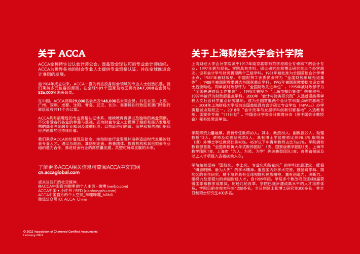 我们期望这项研究能够充分发挥ACCA和上海财经大学在人才发展领域的深刻洞察力和丰富经验,为雇主提供最新的财会人才发展趋势以更好地吸引和留住人才,为高校明晰财会人才培养的要求与方向。