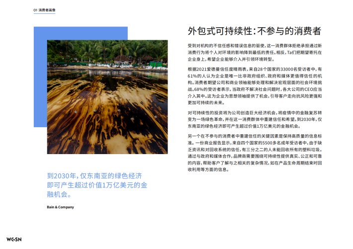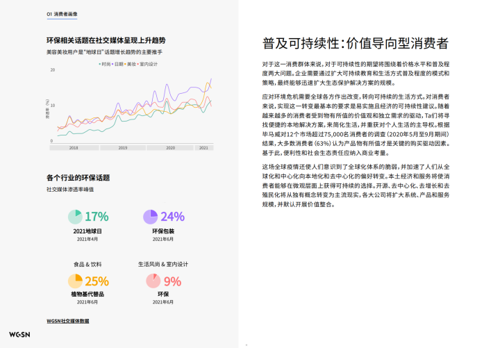 这份白皮书涵盖WGSN所服务的每个行业的独特需求,包括美妆、科技消费品、时尚、食品&饮料以及室内设计,重点介绍了负责型产品开发流程的六大核心支柱,即采购、设计、生产、分配、消费和购后。我们还在附录中增加了WGSN内部使用的环保术语汇编,作为开源的教育型工具供所有人使用,帮助人们理解晦涩、复杂的术语。