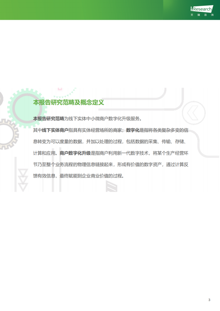 “数字经济是以数字化的知识和信息作为关键生产要素,以数字技术为核心驱动力,以现代信息网络为重要载体,通过数字技术与实体经济深度融合,不断提高数字化、网络化、智能化水平,加速重构经济发展与治理模式的新型经济形态。”