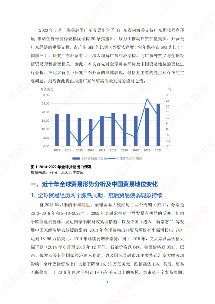 规模虽仍居第一,但在美欧日韩等主要贸易伙伴中的贸易地位有所下降,未来的贸易增长面临挑战。广东作为中国的外贸第一大省,在全球贸易疲弱形势下外贸表现仍有不少亮点: (1)出口贸易规模持续领先全国; (2)贸易伙伴日趋多元化,与新兴经济体贸易往来增强; (3)高技术含量产品出口有所提升; (4)私营企业成为外贸主力军。但同时广东外贸近年来也面临贸易增长乏力、占全国份额持续下降的问题。主要原因在于:(1)过多依赖欧美日韩香港等传统贸易伙伴;