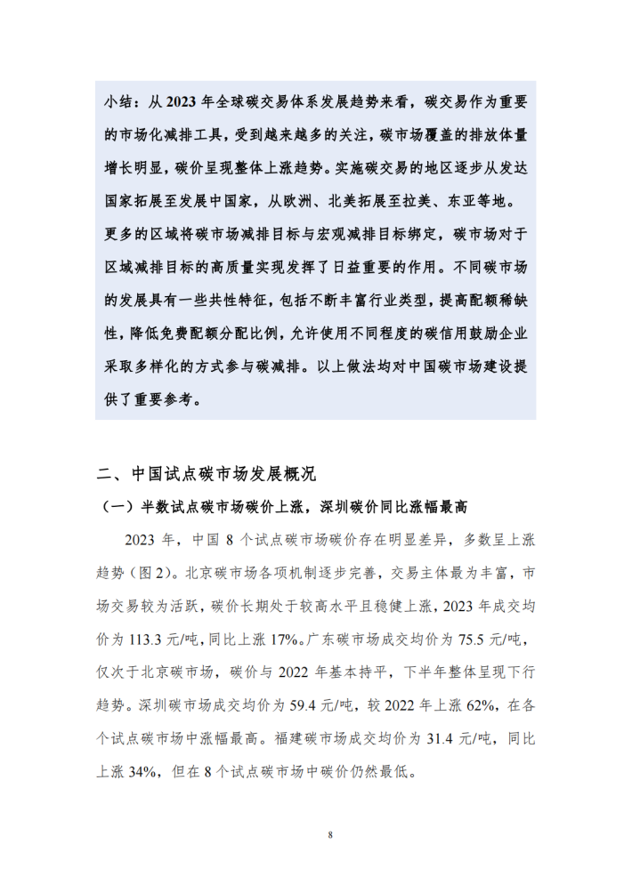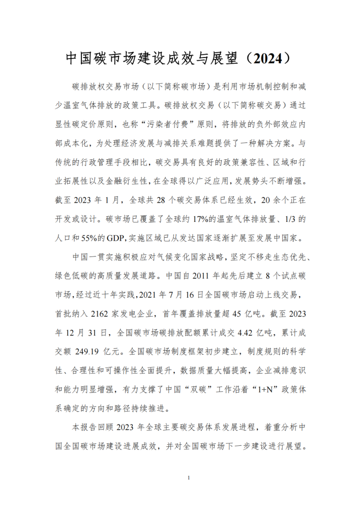 本报告回顾2023年全球主要碳交易体系发展进程,着重分析中国全国碳市场建设进展成效,并对全国碳市场下一步建设进行展望。
