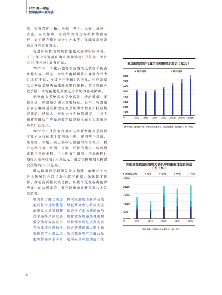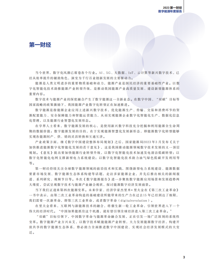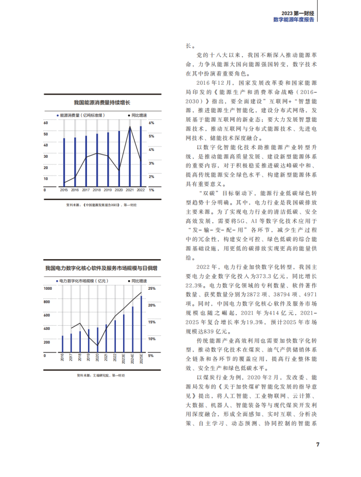 产业政策方面,继《数字中国建设整体布局规划》之后,国家能源局2023年3月发布《关于加快推进能源数字化智能化发展的若干意见》,这是我国推动能源领域数字技术发展的又一顶层规划。《意见》提出要加快能源行业转型升级,以数字化智能化技术加速发电清洁低碳转型;以数字化智能化电网支撑新型电力系统建设;以数字化智能化技术助力油气绿色低碳开发利用等等。