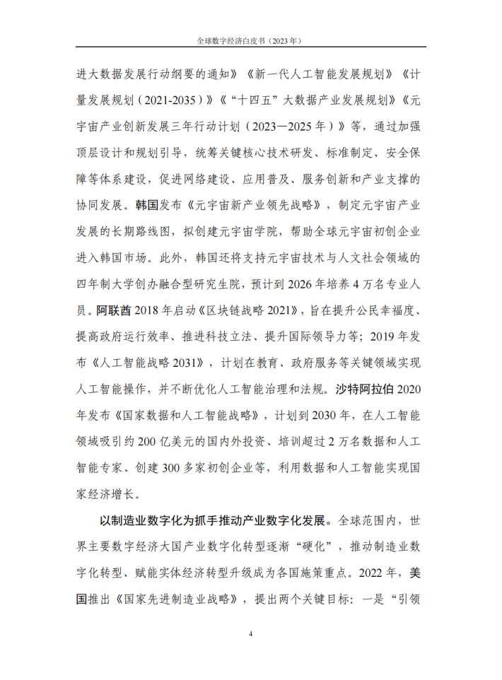 数字经济重点领域发展成效显著。网络基础设施、算力基础设施等数字基础设施加快建设,数字经济发展基石不断夯实。5G融合应用生态加快形成,人工智能创新和应用力度加大,数字技术产业稳步发展释放巨大发展潜力。工业、医疗等代表领域数字技术应用程度加深,数字技术与实体经济深度融合进入发展新蓝海。