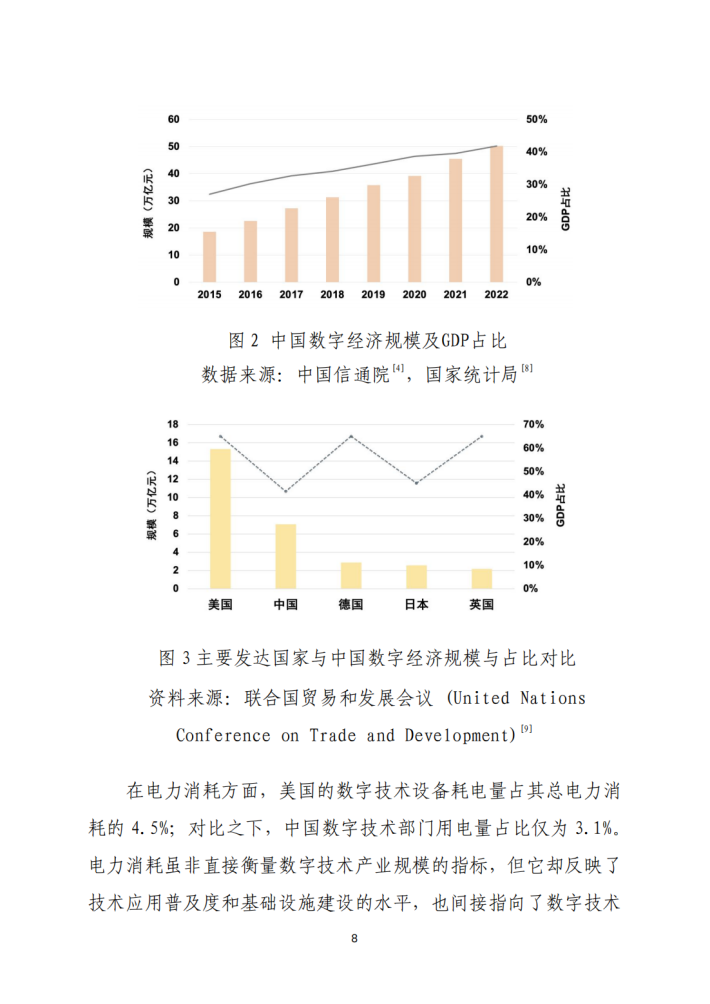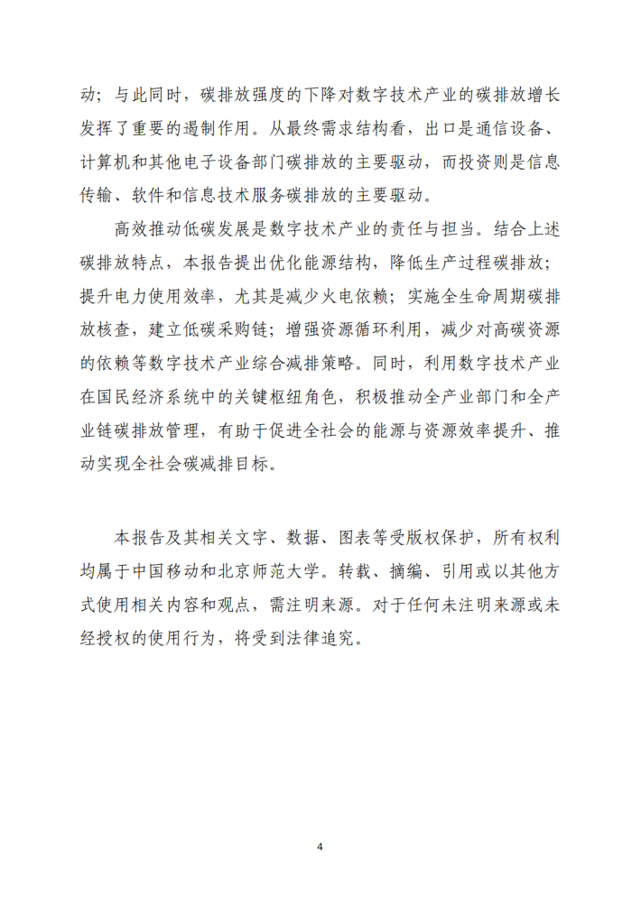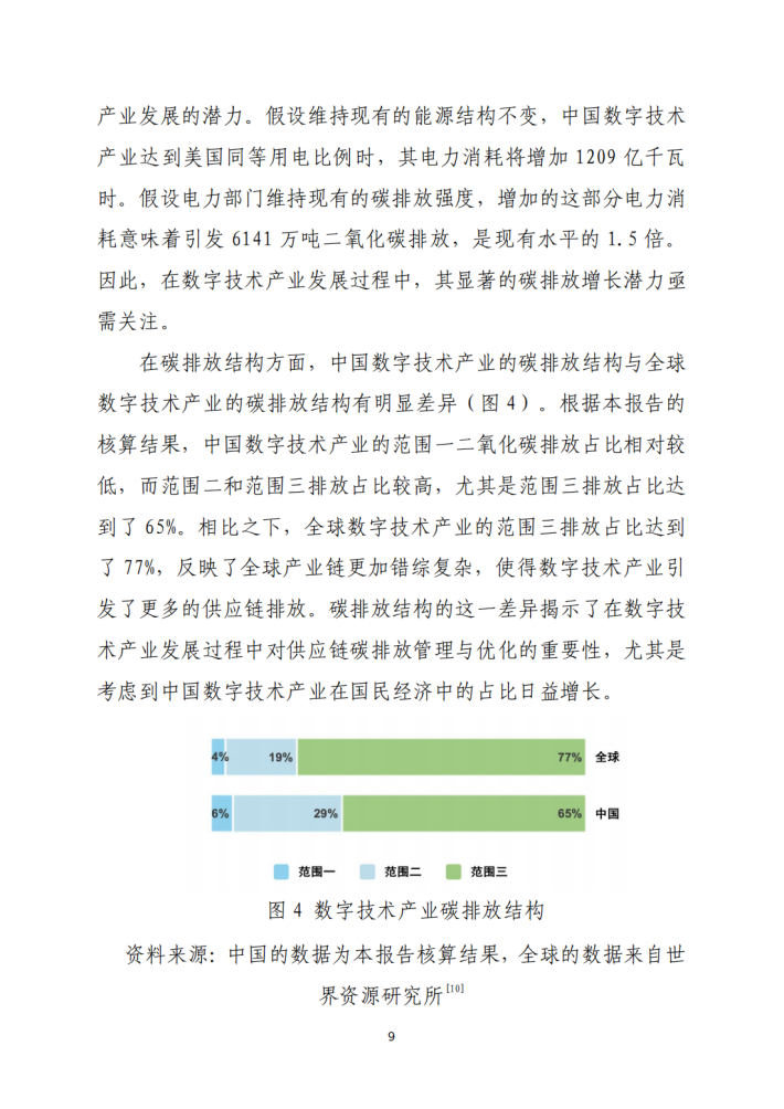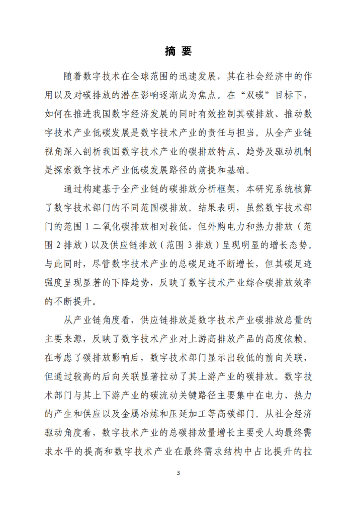 通过构建基于全产业链的碳排放分析框架,本研究系统核算了数字技术部门的不同范围碳排放。结果表明,虽然数字技术部门的范围1二氧化碳排放相对较低,但外购电力和热力排放(范围2排放)以及供应链排放(范围3排放)呈现明显的增长态势。与此同时,尽管数字技术产业的总碳足迹不断增长,但其碳足迹强度呈现显著的下降趋势,反映了数字技术产业综合碳排放效率的不断提升。