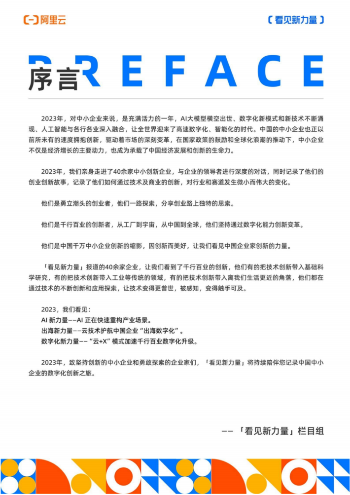 2023年,对中小企业来说,是充满活力的一年,Al大模型横空出世、数字化新模式和新技术不断涌现、人工智能与各行各业深入融合,让全世界迎来了高速数字化、智能化的时代。中国的中小企业也正以前所未有的速度拥抱创新,驱动着市场的深刻变革,在国家政策的鼓励和全球化浪潮的推动下,中小企业不仅是经济增长的主要动力,也成为承载了中国经济发展和创新的生命力。