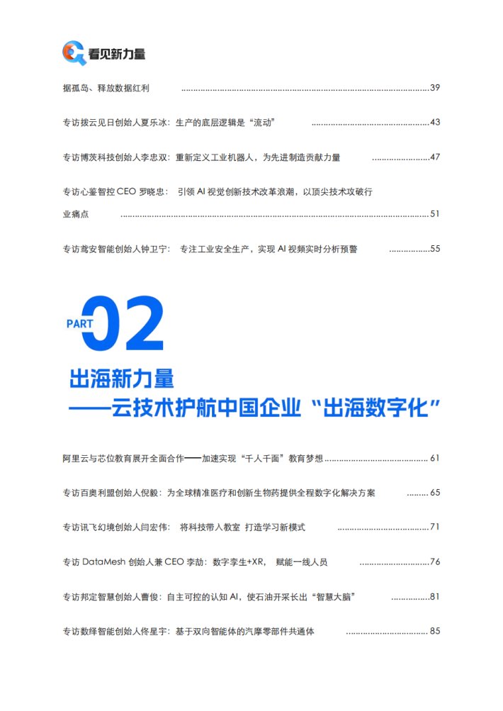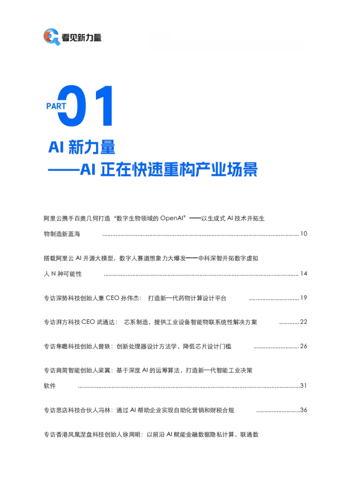 「看见新力量」报道的40余家企业,让我们看到了千行百业的创新,他们有的把技术创新带入基础科学研究,有的把技术创新带入工业等传统的领域,有的把技术创新带入离我们生活更近的角落,他们都在通过技术的不断创新和应用探索,让技术变得更普世,被感知,变得触手可及。